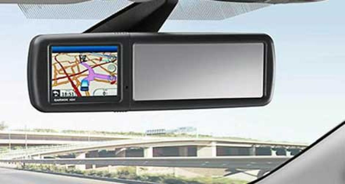 Cette solution, baptisée MirrorNavi, n’est pas 100% nouvelle, puisqu’il s’agit d’un produit issu du catalogue Garmin. Un écran couleur de 3″5 est intégré aux côtés du miroir du rétroviseur (électrochrome), avec toutes les fonctionnalités des GPS de la marque, et vient en remplacement du rétroviseur d’origine