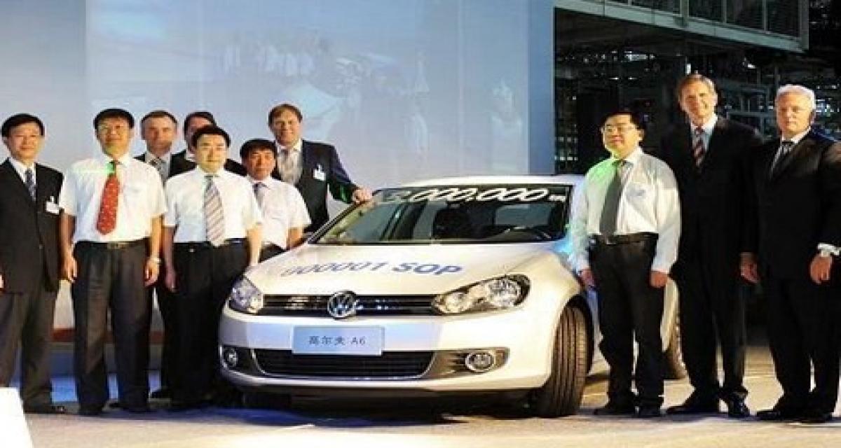 Volkswagen poursuit sa success-story Chinoise. Depuis 2004, il vend plus de voitures dans le Pays du Milieu qu’en Allemagne. Dimanche, FAW-VW, l’une de ses deux joint-ventures, a produit sa 3 millionième voiture. Il s’agissait d’ailleurs de sa toute première Golf VI.