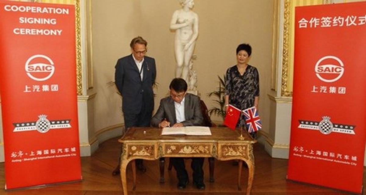 La scène est désormais familière: un patron d’industrie Chinois (Chen Zhi Xin, N°2 de SAIC) paraphe un document préliminaire de partenariat avec un occidental, sous les yeux d’un(e) officiel(le) local(e) (Li Xue, du conseil d’Anting.) Sauf que le partenaire occidental n’est pas un industriel, mais Lord March, propriétaire du circuit de Goodwood.