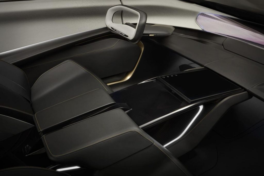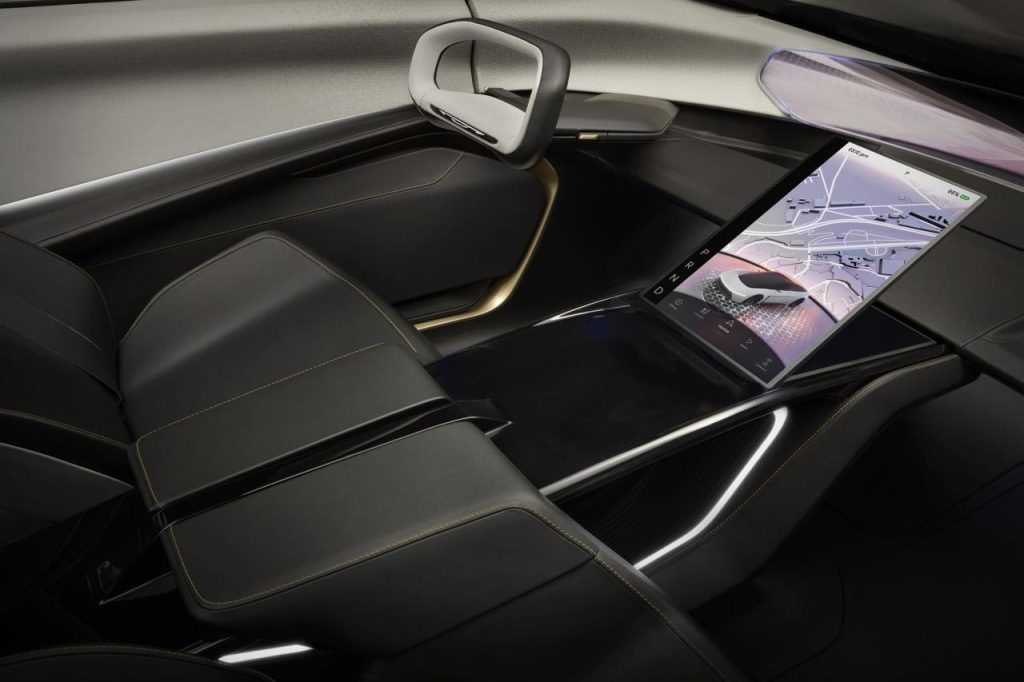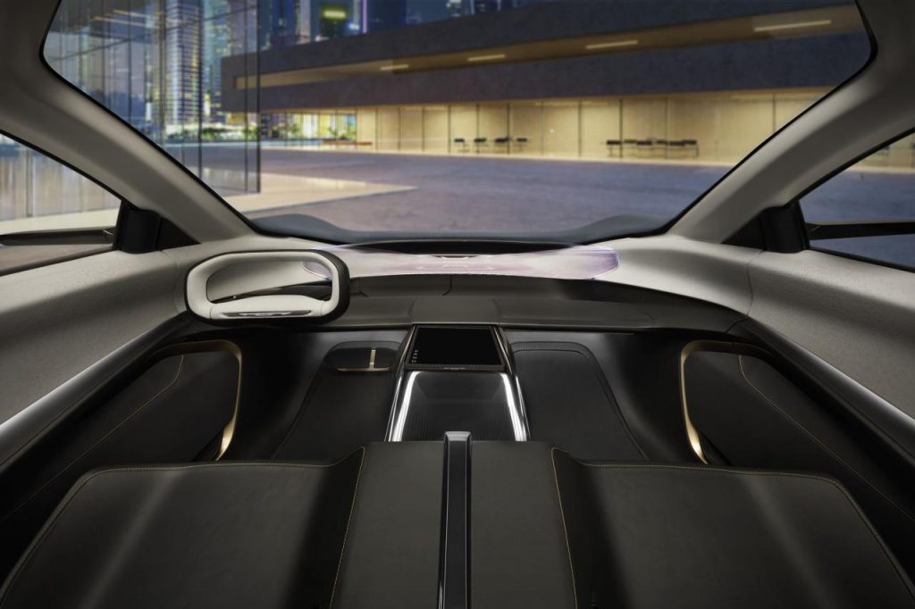 L'intérieur du concept est finalement plutôt réaliste. On a comme souvent depuis quelques années (et depuis Tesla en gros) une planche de bord ultra-simple, dominée par un grand écran tactile de 15,6 pouce. Cet écran s'escamote pour encore plus de simplification des lignes de la planche de bord. Il est complété par une immense vitre pour afficher plein d'informations en réalité augmentée.