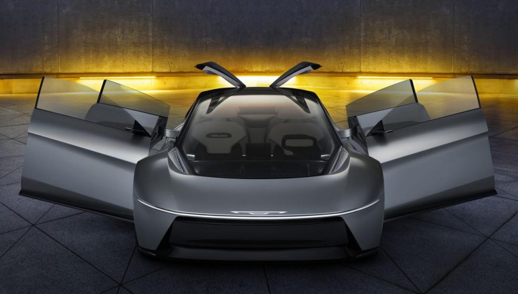 Le véhicule est posé sur des roues de 22 pouces avec des pneus à faible résistance. Les portières sans poignées et les rétroviseurs caméra améliorent l'aérodynamisme. La cinématique des ouvrants est assez bluffante. La portière avant sans montant fait écho à celle de l'arrière. On notera l'absence de pied milieu. Et pour améliorer encore l'accès à bord, le toit s'ouvre aussi ! Cela dégage totalement l'habitacle. Bon, on sait qu'en série ce genre d'ouvertures restent très très rarement.