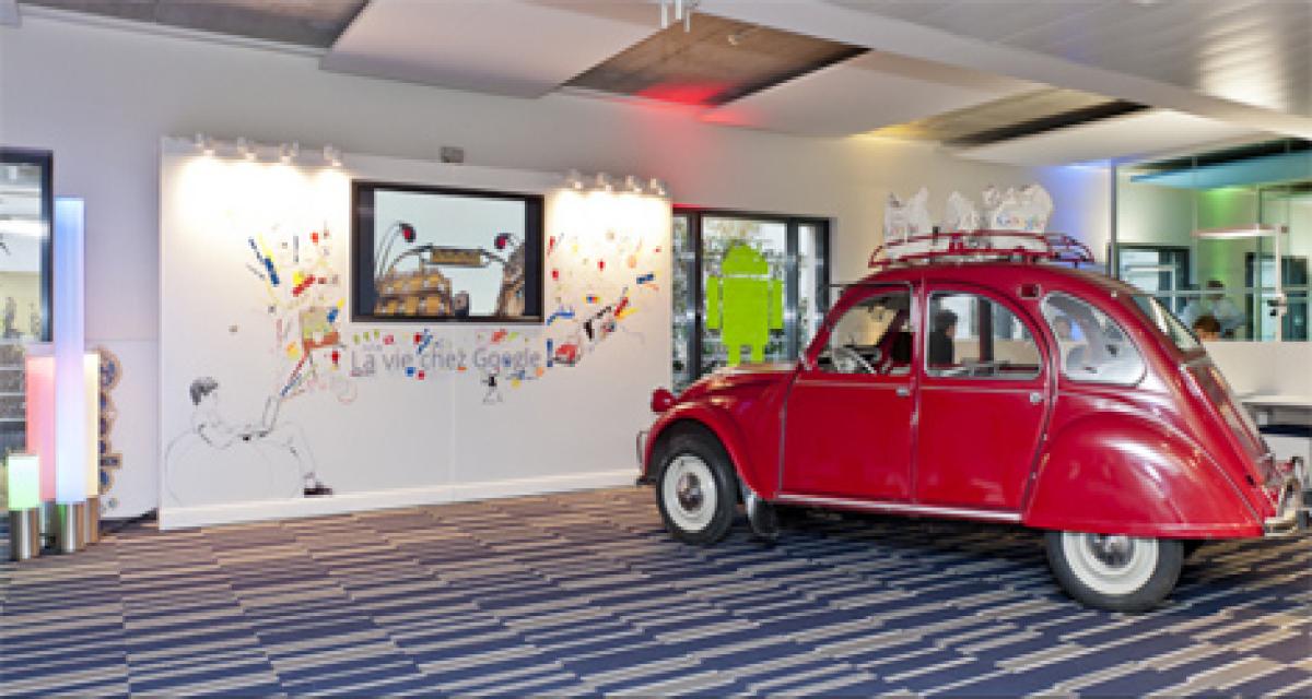C’est une superbe AZAM rouge de 1967 en parfait état avec sa galerie «accessoire d’origine» qui s’est prêtée au jeu et qui a eu l’honneur d’approcher Nicolas Sarkozy venu pour l’inauguration officielle de ce nouveau centre de recherche et développement du géant californien.