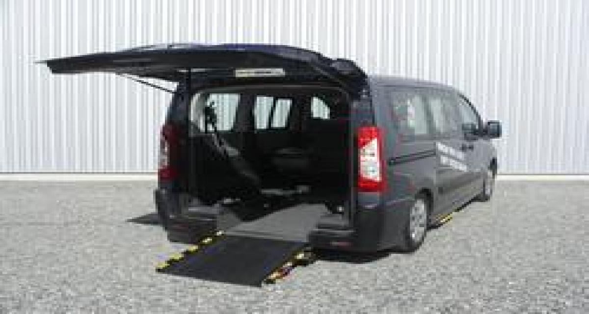 Enfin :·un Jumpy Combi Atlante, HDi 120, aménagé pour le transport d’une personne en fauteuil roulant. A bord, les sièges de rang 3 sont supprimés, le plancher est abaissé afin de faciliter l’accès qui se fait par une rampe repliable.