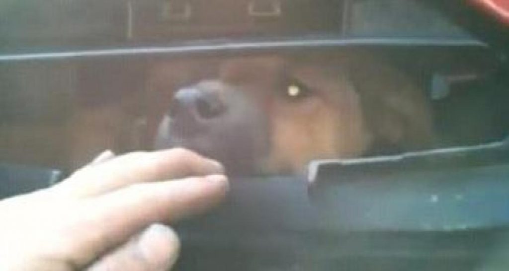 Que du classique comme histoire donc que de retrouver un chien encastré sous son capot… A se demander comment le meilleur ami de l’homme, dit-on, a bien pu réussi à s’en tirer aussi miraculeusement.