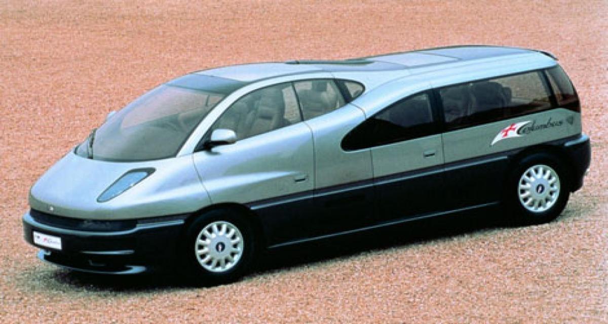 Au début des années 90, plusieurs propositions viennent donner corps à cette montée en gamme du monospace. On pourra citer la tentative du français De La Chapelle avec le Parcours, ou le plus étonnant et extravagant Columbus par Ital Design Giugiaro. Dévoilé au salon de Turin 1992, il célèbre par son nom le 500ème anniversaire de la découverte de l’Amérique. Et il représente à ce titre le concept ultime pour le voyage routier au long cours, sorte de Caravelle des temps modernes…