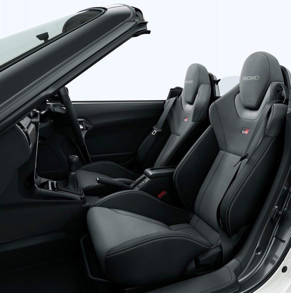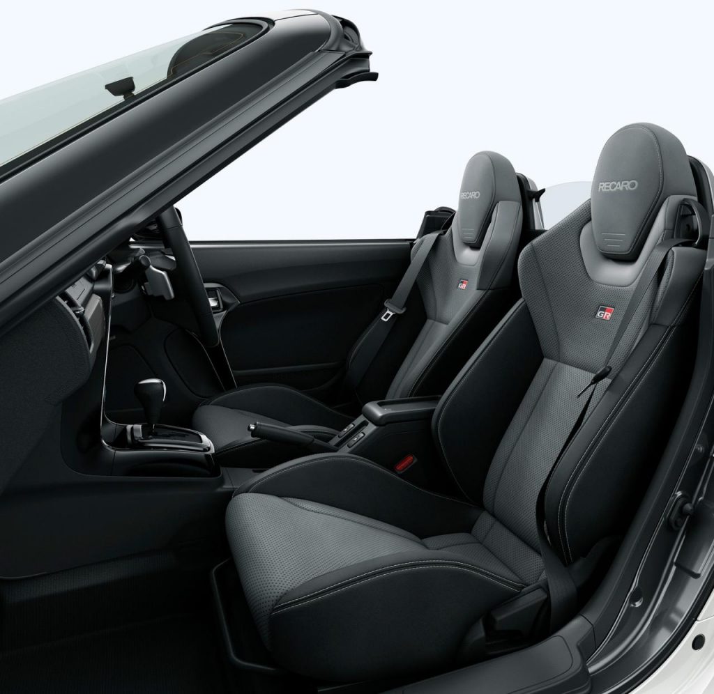 Pour se distinguer de la Copen d’origine, la Copen GR Sport adopte également des éléments de carrosserie modifiés, en particulier une face avant distinctive. L’intérieur reçoit une paire de baquets Recaro qui changent l’ambiance intérieure.