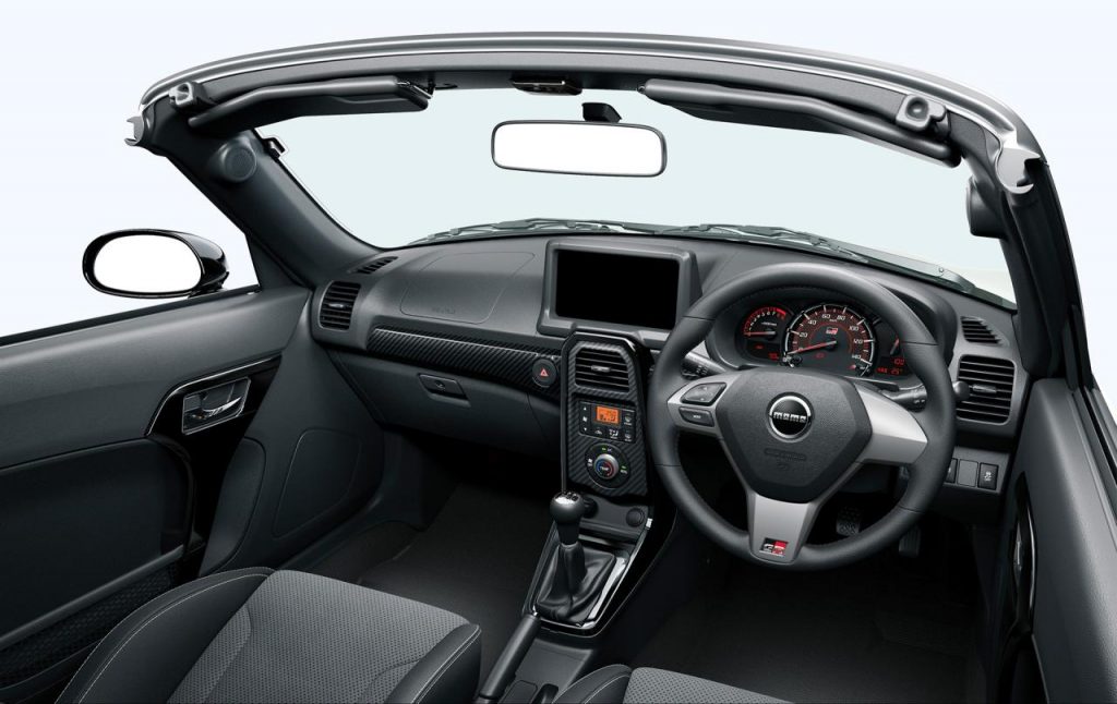 La mécanique n’est pas touchée et reste le 3 cylindres 660cm3 turbo de Daihatsu, qui permet de conserver à l’auto sa classification kei. Le choix d’une boîte manuelle à cinq rapports à côté de la classique CVT s’adresse aux plus sportifs.