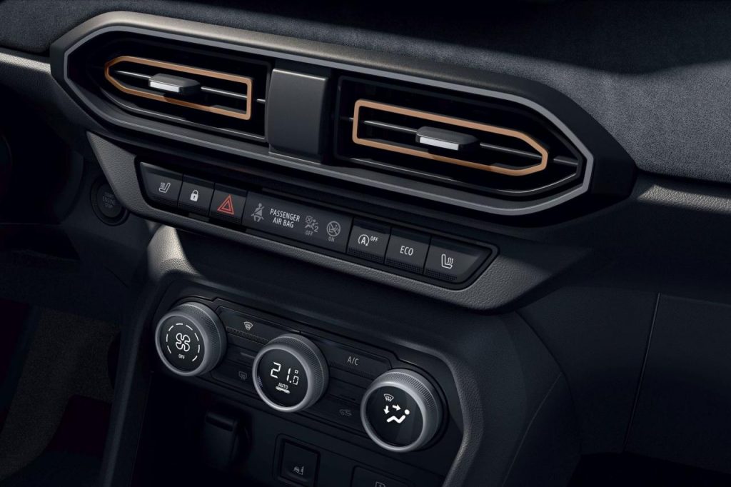 A l'intérieur, les versions Extreme ont droit à un nouveau textile gris MicroCloud. Ce tissu est spécialement développé pour être résistant et être facilement nettoyable. Cela se rapproche du velours selon Dacia. On notera l'embossage du logo sur les dossiers des sièges ou les tapis de sol caoutchouc avec le fameux motif topographique. On retrouve aussi le brun cuivré sur les contre-portes et les aérateurs. Le Duster a aussi droit au contour de l'embase de levier de vitesse dans cette couleur.