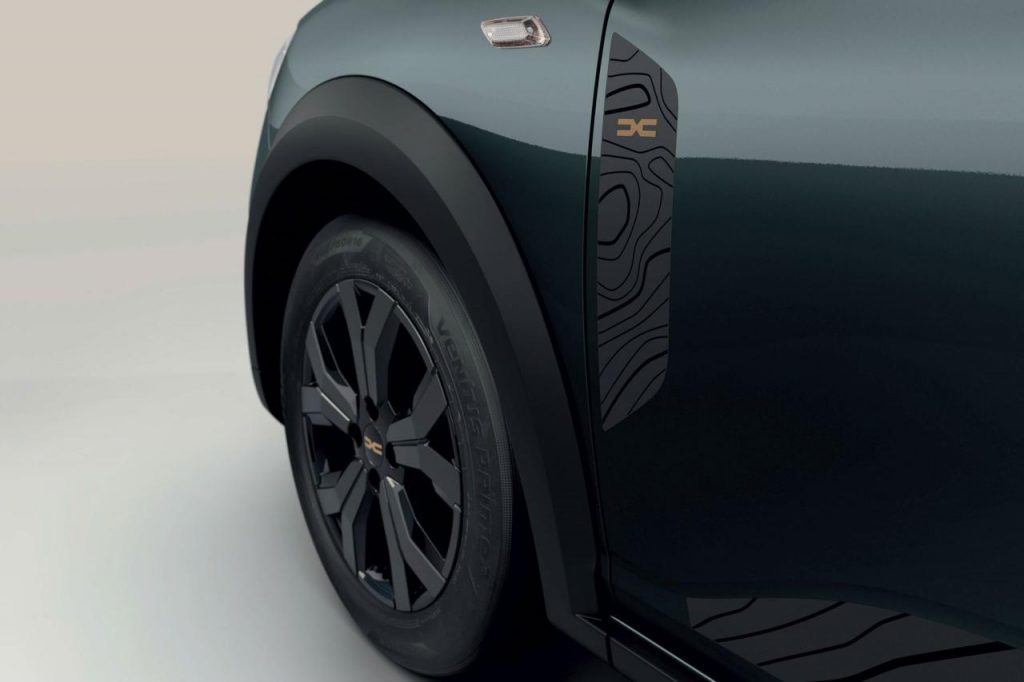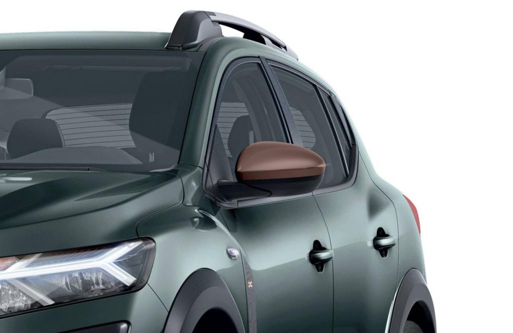La Dacia Sandero Stepway Extreme coiffe la gamme avec une couleur "Vert Cèdre" (+550 €) que l'on retrouve sur Jogger et Duster. Certains éléments extérieurs sont en couleur "Brun cuivré" comme les coques de rétroviseurs extérieurs, le centre des roues, le nom du modèle sur les barres de toit, etc. L'antenne requin est en noir brillant. Selon Dacia, c'est valorisant et cela fait "outdoor" (bon une voiture indoor c'est dans un garage…).