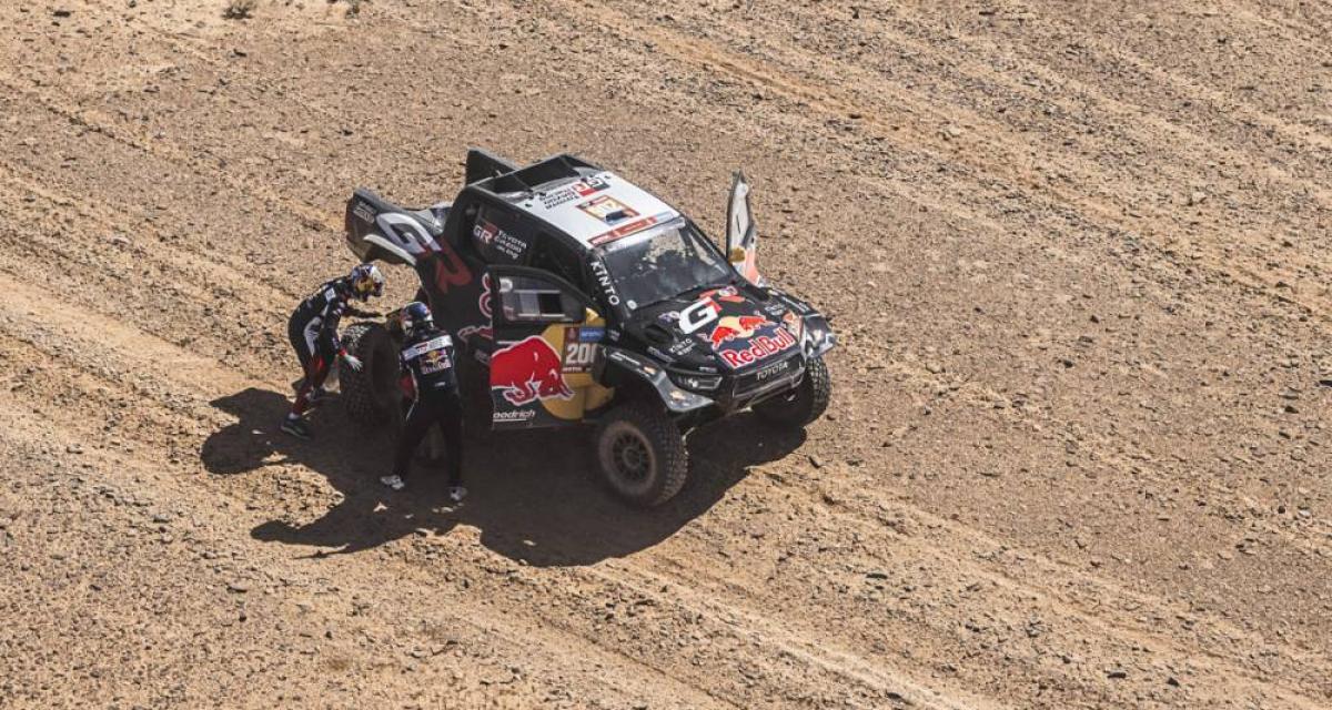 Sauf que ce Hunter est décidément fragile (aux dires d'Al-Attiyah le Hilux ne l'est pas autant) et surtout, Loeb et Lurquin n'avaient pas la pièce de rechange pour réparer. Dans une équipe, en théorie, on sacrifie ceux qui ne jouent plus la gagne pour aider ceux qui la jouent encore. Chez Audi, Ekström et Peterhansel se transforment en "porteurs d'eau", et donnent des pièces de leur Q E-Tron à Sainz si besoin (ce qui a été le cas hier).