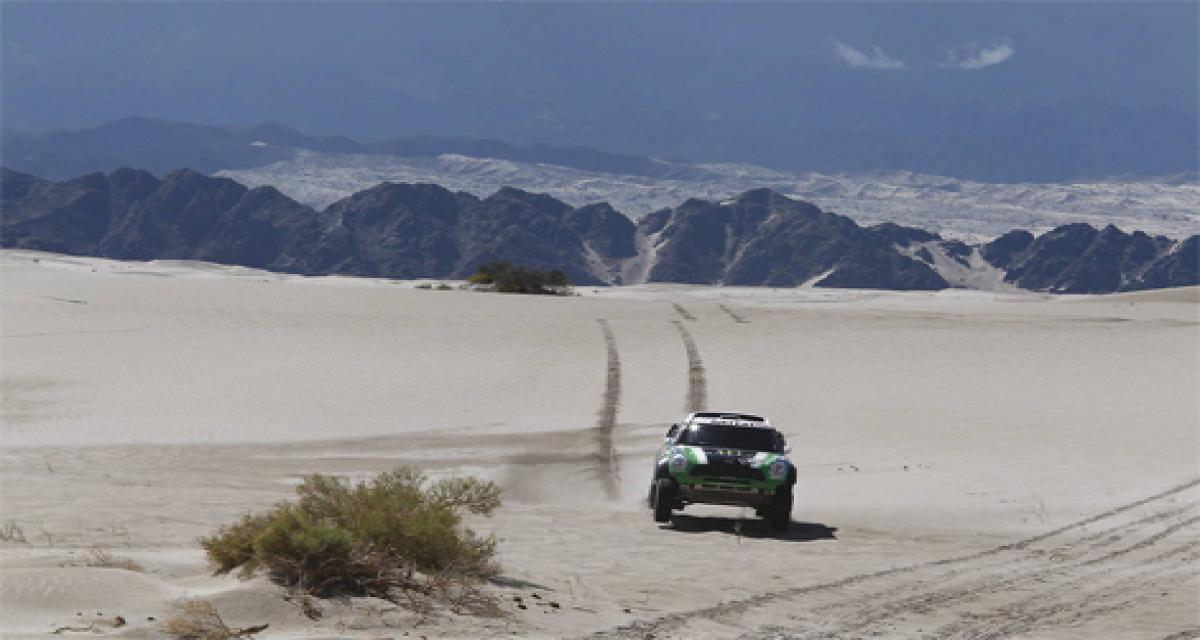 Après 180 km, un cordon de dunes a ralenti quelques-uns des favoris. Si Roma (MINI), Holowczyc (MINI) et De Villiers (Toyota) se sont plantés, Stéphane Peterhansel a choisi un passage très légèrement plus au nord et a signé le meilleur temps devant De Villiers, Novitskiy et Sousa (Great Wall).