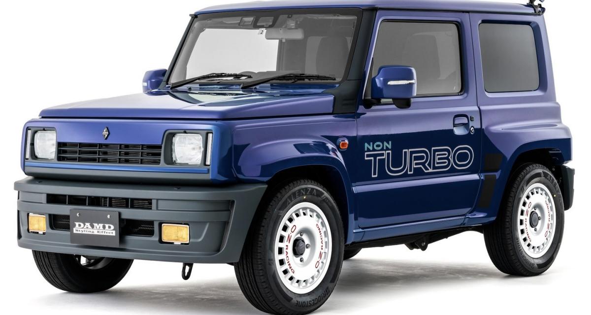 A l’approche du salon de Tokyo, DAMD va encore frapper avec des produits funs et des kits de carrosserie pour la Suzuki Jimny, que l’on peut déjà personnaliser façon « mini Classe G » de Mercedes. Mais désormais, vous aurez le choix d’un kit « Little 5 » et d’un kit « Little Delta ». La Little 5 propose un kit qui singe la R5 Turbo, mais sans la motorisation qui va avec, ce que la carrosserie n’oublie pas de préciser, puisque figure sur les portes l’inscription « Non Turbo ». Vous aurez droit néanmoins à des jantes OZ Racing du plus bel effet, tandis que le logo DAMD sur la calandre va même jusqu’à imiter le losange de Renault dans un style « vintage ». La Little Delta pour sa part permettra d’avoir un kit singeant la Delta HF Intégrale si chère aux amateurs du Groupe A et du WRC des années 80-90.