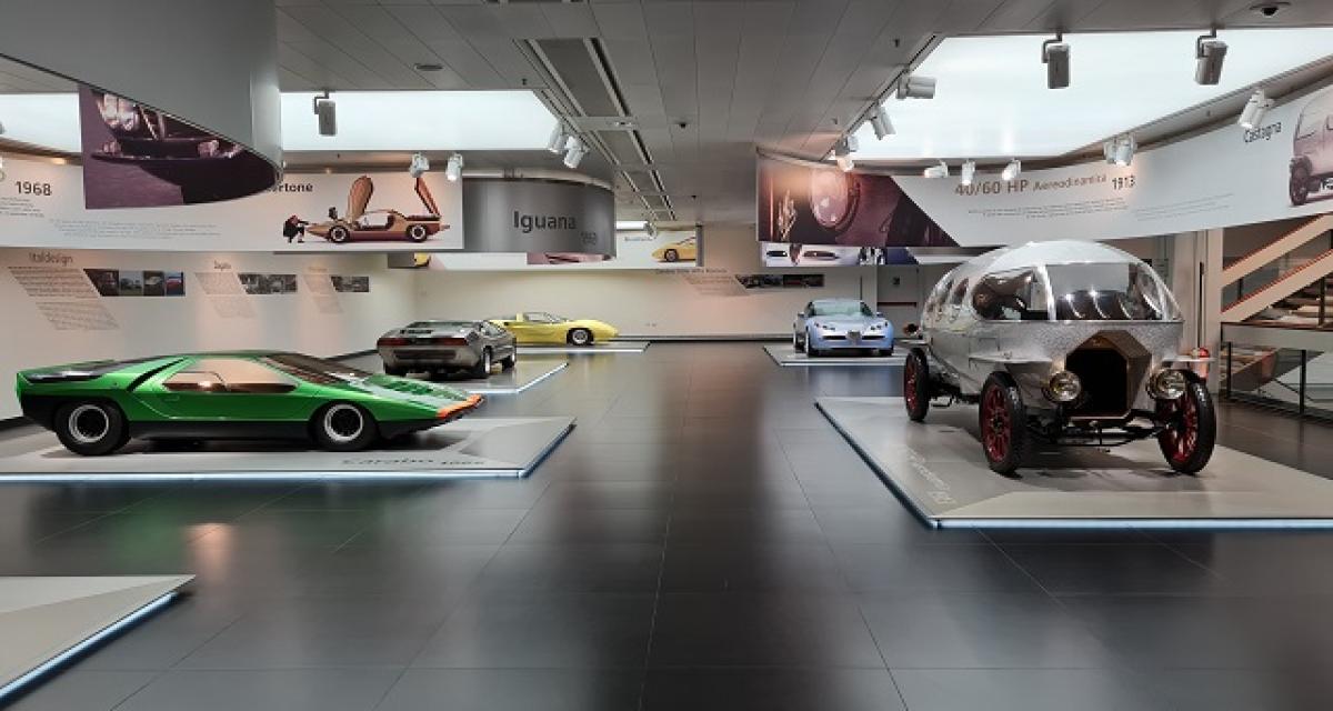 En descendant, on passe par un niveau dédié aux carrossiers (Bertone, Zagato, etc.) et designers, qui permet d’admirer des modèles et prototypes saisissants comme les Disco Volante et la futuriste Carabo, tout en angles affûtés, dessinée par le « maestro » Marcello Gandini, le papa des Lamborghini Miura et Countach (mais aussi de la Citroën BX et de la Renault Super 5)