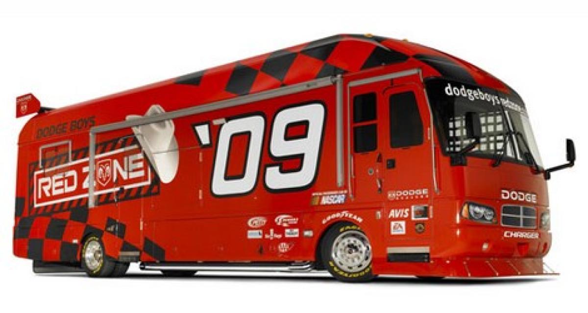 Les « 3 grands » se creusent là tête pour faire venir les acheteurs US dans leurs concessions. Pour rappeler son engagement en Nascar, Dodge va effectuer une tournée avec des prix à gagner et (forcément) de bons deals chez votre concessionnaire Dodge. Pour faire connaitre cette tournée, Dodge a fait des pubs à la gloire… Du bus Dodge Boys Red Zone!