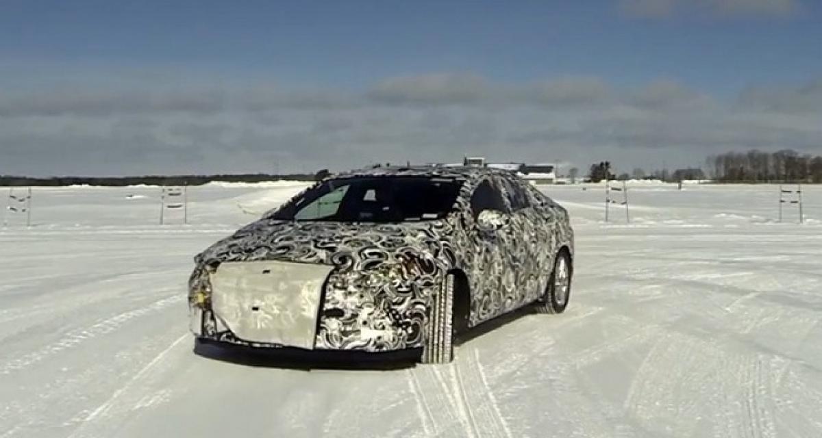 Mais avant de lever le voile sur sa nouvelle Volt, le constructeur américain continue de teaser. Cette fois, on apprécie un prototype de la future berline en tenue de camouflage en tests sur un lac gelé et dans de froides conditions hivernales.