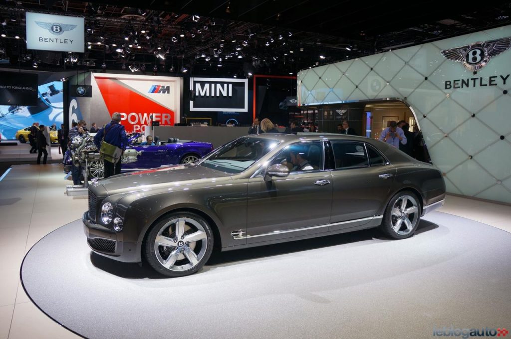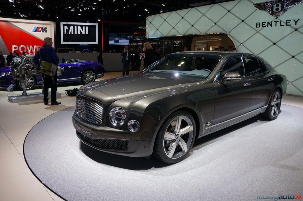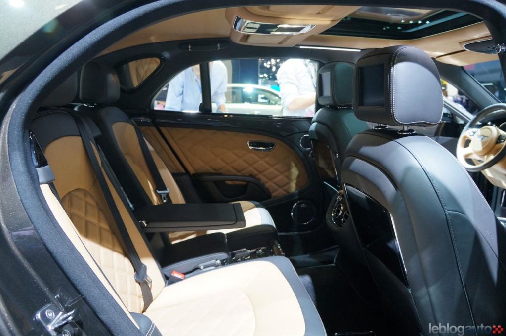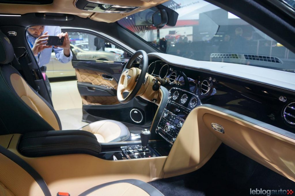 Extérieurement la Bentley Mulsanne Speed reste presque (trop) sobre. On retrouve les détails stylistiques de la marque comme la calandre ou les feux avants et arrières et une ligne sans fioriture. En revanche à l’intérieur, cela déborde de cuir, de chrome, de laque piano, de carbone, de moquette épaisse, etc. Il faut aimer mais évidemment certains aiment et sont prêts à débourser plus de 300 000 euros pour voyager dans ce vaisseau au long cours.