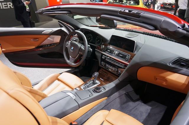 La Série 6 F12 est au catalogue depuis 2011 et fait partie des prochains modèles à renouveler dans la gamme avec la Série 7 que nous avons déjà pu voir et la Série 5. Les Américains restent friands des gros coupés et cabriolets voilà pourquoi elle est présentée ici à Détroit. Les modifications de la Série 6 à l’extérieur sont minimes et le mot est faible. Notre envoyé spécial a admis également avoir eu du mal à jouer au jeu des sept erreurs tout simplement parce qu’il n’y en a pas autant. Elles s’appliquent sur le bas du bouclier avant et arrière, les naseaux de la calandre et les rétroviseurs. Côté optiques, les blocs entièrement à Leds deviennent de série sur toute la gamme contrairement aux phares à Leds adaptatifs qui sont en option.