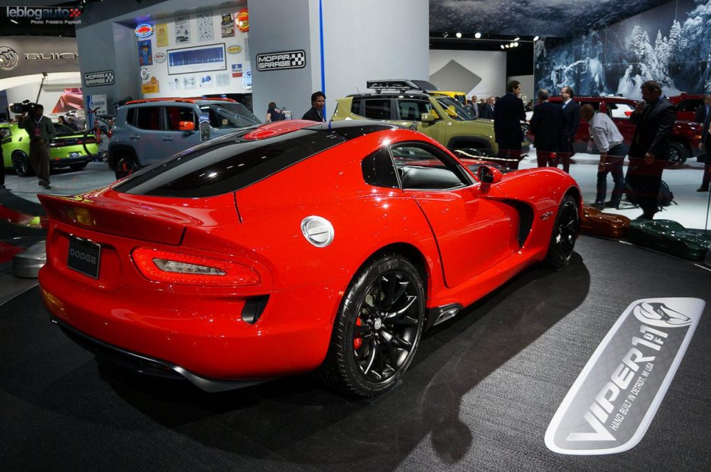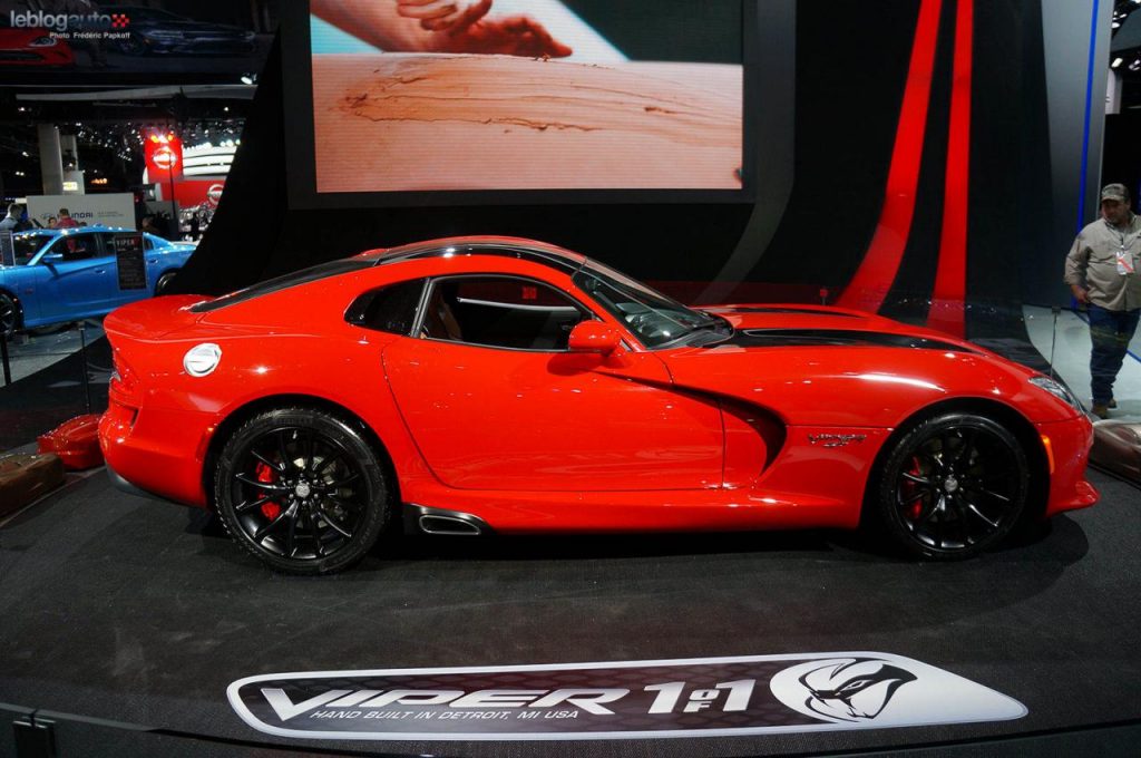 Même si la voiture présentée à Detroit est bien sobre, avec sa robe rouge et ses deux bandes noires, le programme de personnalisation est plein de possibilités. Le client pourra choisir parmi 8000 teintes de carrosserie et ainsi ne pas avoir la même Dodge Viper que son voisin. Il pourra sélectionner ses jantes parmi 10 propositions, et choisir parmi 16 selleries intérieures et 6 packs aérodynamiques.