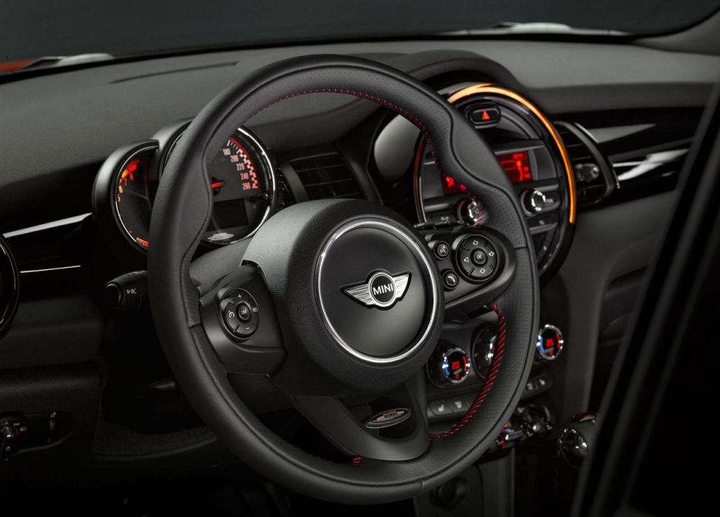 D’un point de vue du style, la John Cooper Works reste relativement sobre. Sa face avant s’ouvre plus largement pour faire entrer plus d’air, en particulier via la suppression des phares antibrouillard. L’aileron et les jantes 17 pouces font partie de sa signature, complétée par des coloris spécifiques. Le châssis profite de réglages spécifiques et reçoit des freins plus puissants signés Brembo. L’amortissement piloté reste en option. A bord, l’ambiance est surtout marquée par les sièges sport, mais la signature John Cooper Works est également apposée sur le pédalier alu, le volant ou le levier de vitesse.