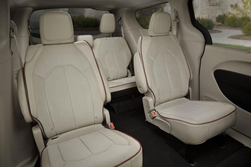 Tout en cherchant à offrir des qualités de conduite, d’insonorisation ou de confort, le Pacifica est un vrai monospace dans le sans où il n’oublie nullement de soigner ses occupants, et de continuer à offrir un maximum de flexibilité dans l’aménagement. Le design intérieur reprend des éléments de la 200, comme la commande rotative pour la boîte automatique, et inaugure la dernière génération de système uConnect avec des écrans de 5 à 8,4 pouces.