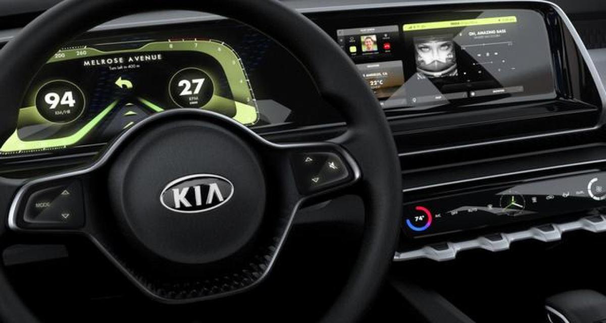 Instrumentation digitale, large écran tactile et composants imprimés en 3D se distinguent. Selon Kia, ces composants promettent « une pointe de modernité au volant comme au tableau de bord ou aux panneaux de portes. »