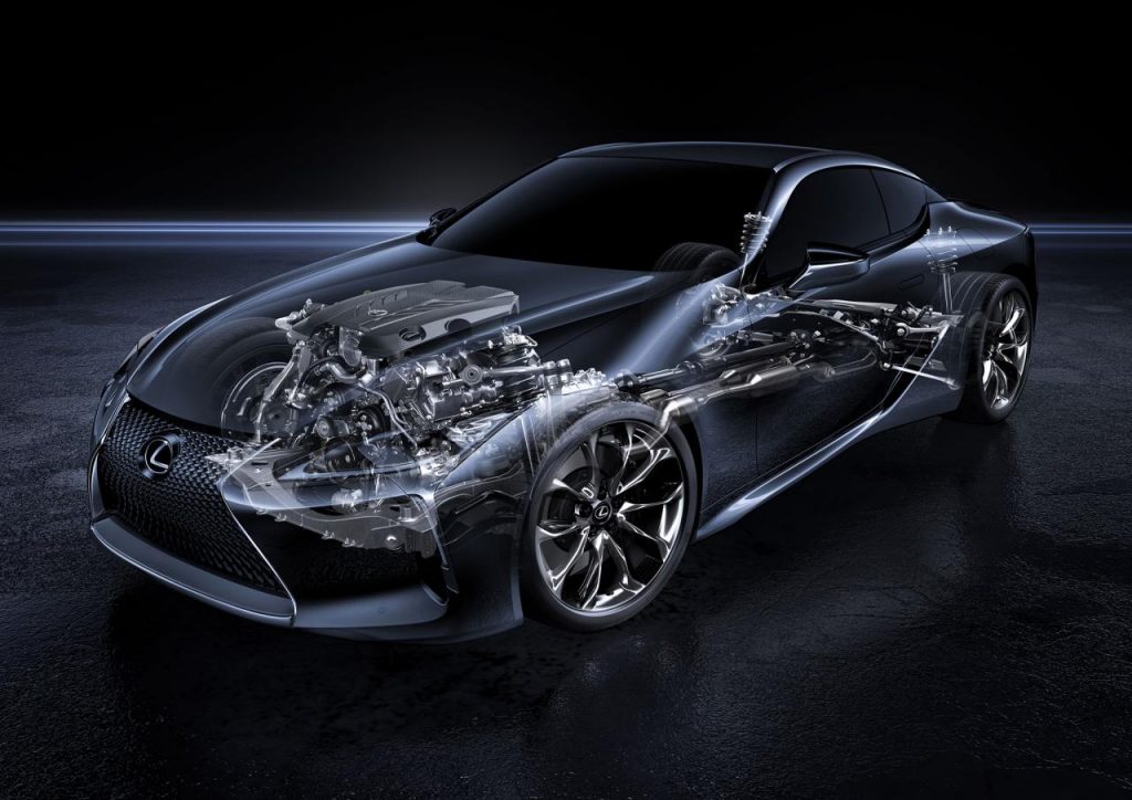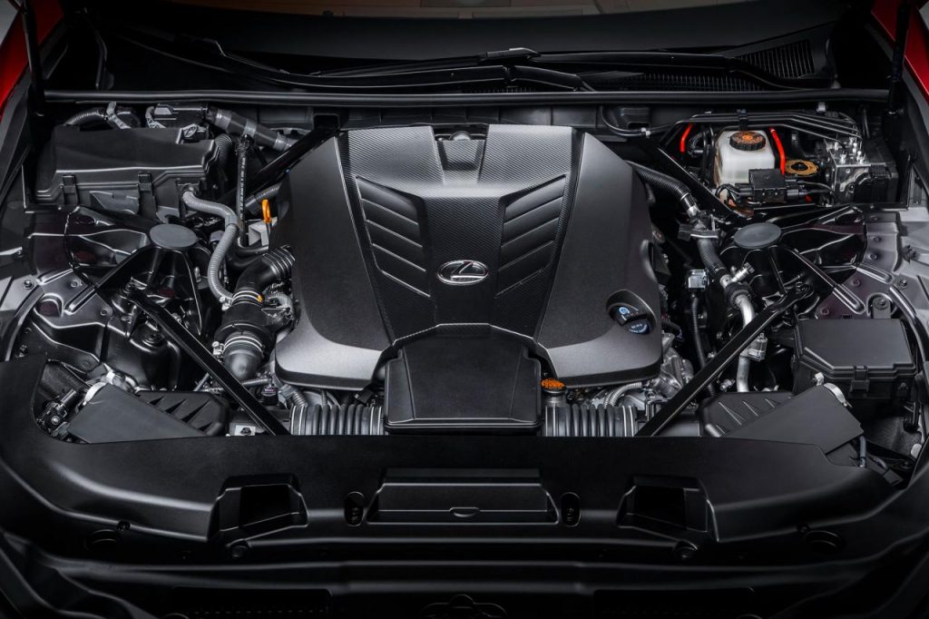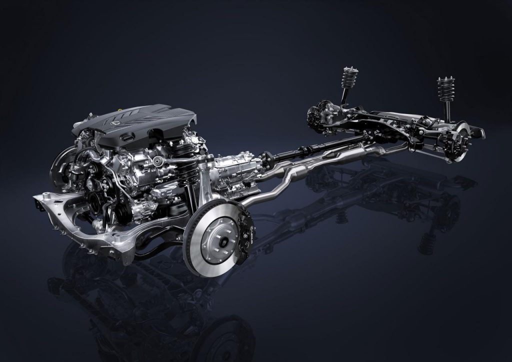 Cette plateforme baptisée GA-L (Global Architecture for Luxury vehicles) sera par la suite utilisée par la nouvelle LS. Et représente ici un effort de réduction de la masse avec par exemple un plancher de coffre composite, des portes en aluminium (peau) et carbone (structure) ou encore un toit en fibe de carbone (en option à la place du toit verre). Au final, la masse est distribuée à 52% sur l’avant et 48% sur l’arrière.
