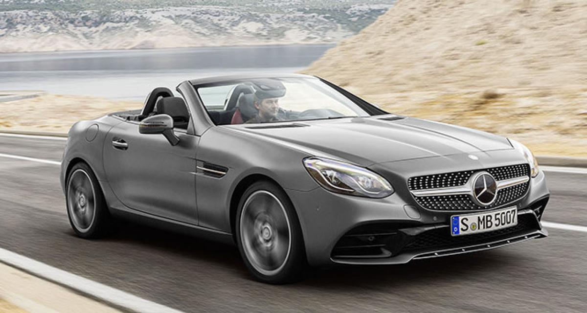 La gamme comporte à présent 5 motorisations. Certaines avait déjà évolué dernièrement, et le coeur de gamme n’évolue donc pas. On retrouve ainsi en essence la SLC200 (2.0 Turbo de 184 ch) et la SLC300 (2.0 Turbo de 245 ch), et en diesel la SLC250d (2.0 Turbo de 204 ch).