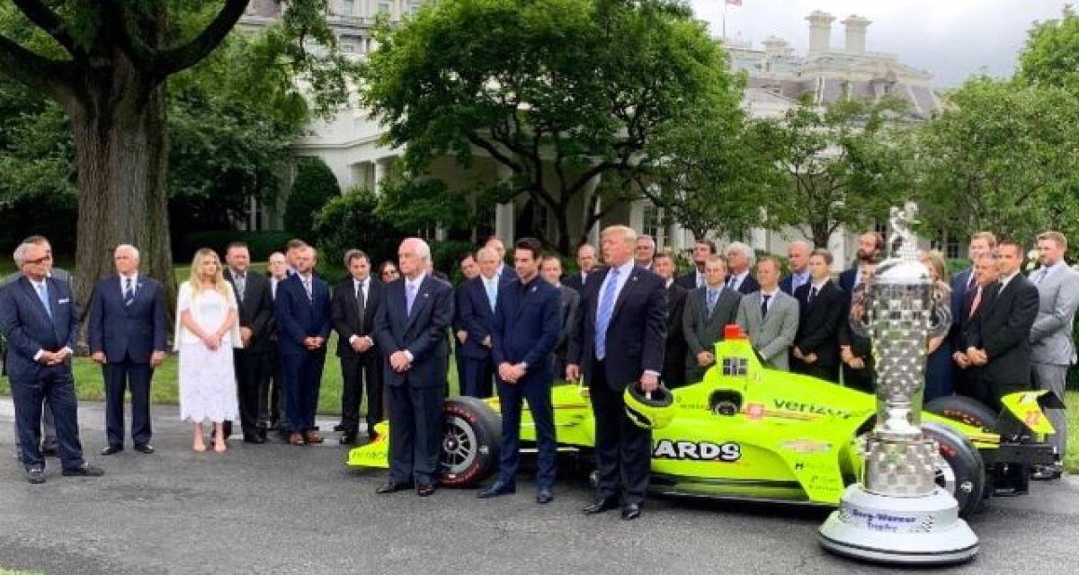 | « Je sais que c’est difficile de remporter les 500 miles d’Indianapolis », a-t-il lancé, depuis les jardins de la Maison Blanche, en présence du pilote et de Roger Penske, le propriétaire de son écurie. « Je ne le ferais pas (…) En fait, je le ferais peut-être pour cette coupe », a-t-il ajouté dans les rires, désignant la gigantesque coupe apportée sur les lieux pour l’occasion.