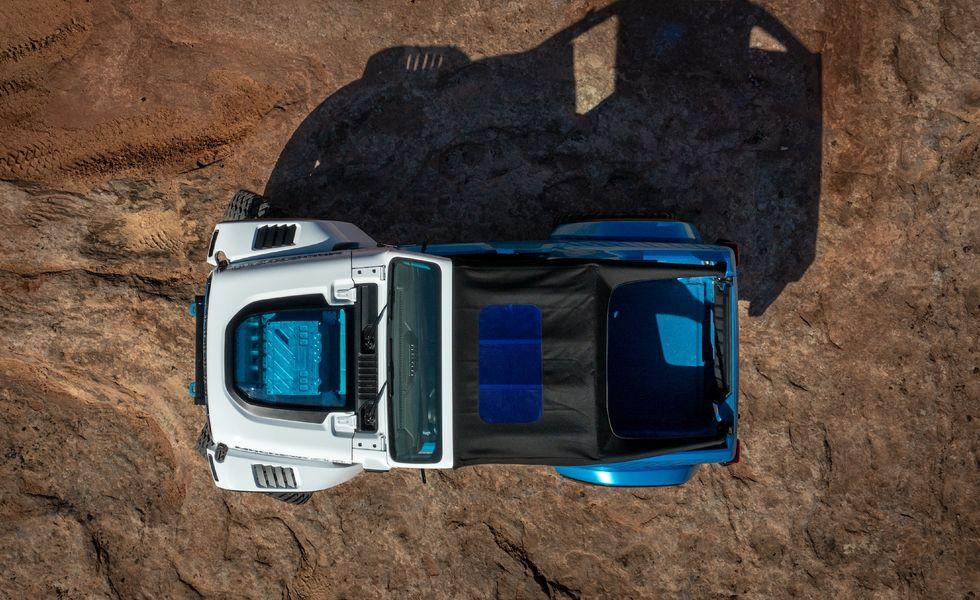 Incroyablement, le groupe motopropulseur tout électrique serait toujours associé à une transmission manuelle traditionnelle, qui transférerait 625 chevaux au groupe motopropulseur 4×4. Même avec autant de puissance sous la pédale, Jeep jure que, contrairement aux autres concepts, l'autonomie et le kilométrage ont été "très approuvés".Jeep affirme également avoir mis à jour le moteur électrique du Magneto pour qu'il soit plus efficace, citant une augmentation de 20 % de l'énergie et de l'autonomie utilisables