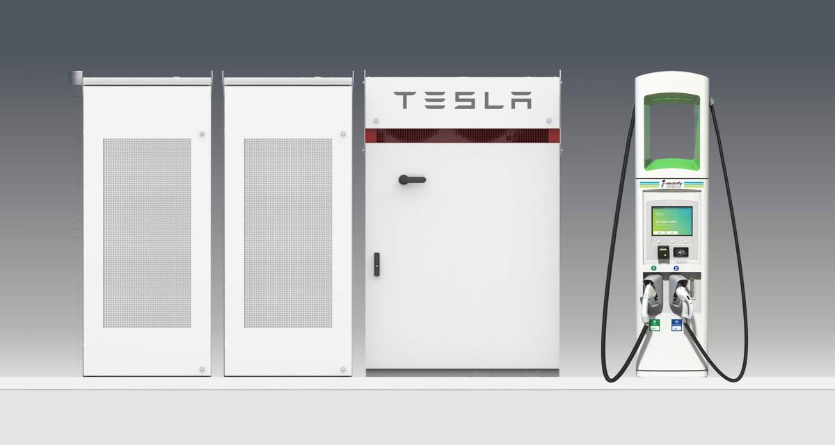 Electrify America, le réseau de charge américain de Volkswagen, va compléter certaines de ses installations par des batteries. Elle seront fournies par… Tesla.