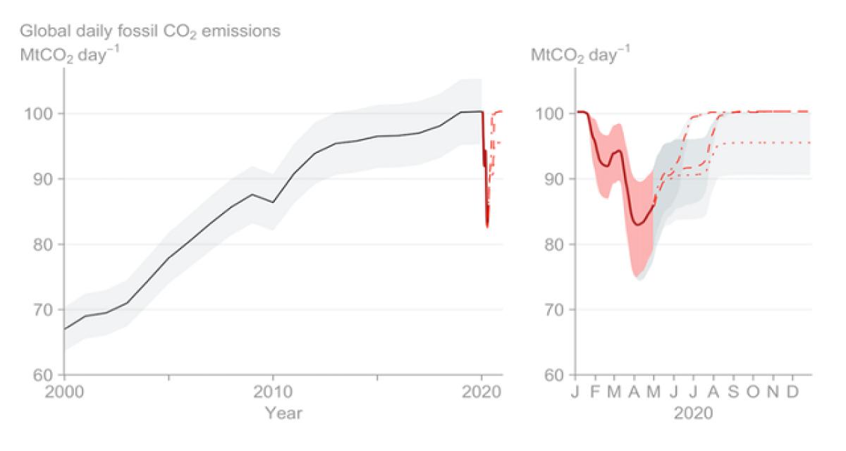 Au printemps dernier, soit au plus fort de la politique de confinement menée à travers le globe, ces émissions ont même chuté d’environ 17% par rapport à 2019.