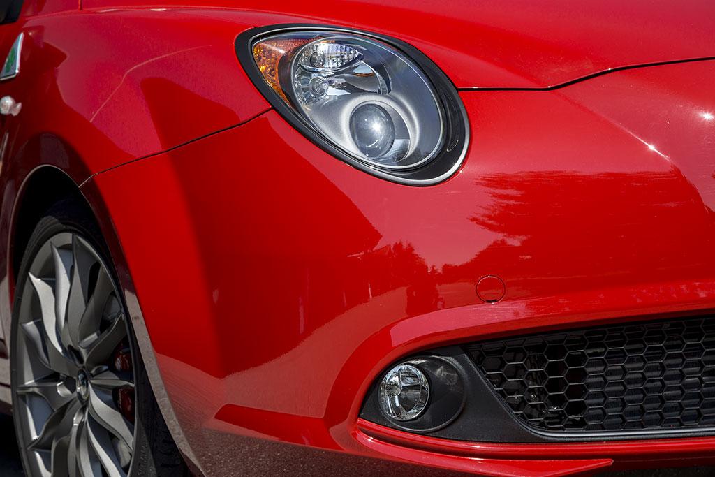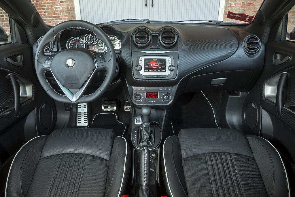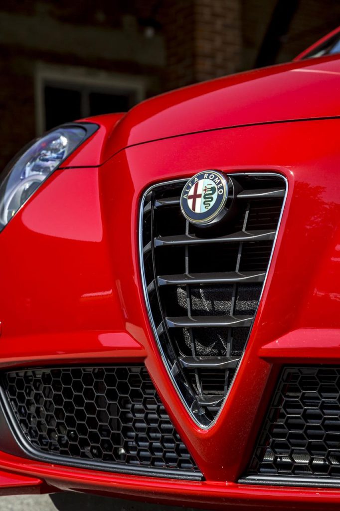 Ayant profité récemment, avec le reste de la gamme, de quelques discrets changements d’ordre stylistique, la MiTo Quadrifoglio Verde ne revoit pas en profondeur ce point pour ce millésime 2014. Elle se contente d’aligner sa présentation sur celle de la grande sœur Giulietta, avec un traitement chrome foncé des différents éléments habituellement brillants, poignées de portes, cerclage des optiques, barres horizontales de la calandre…