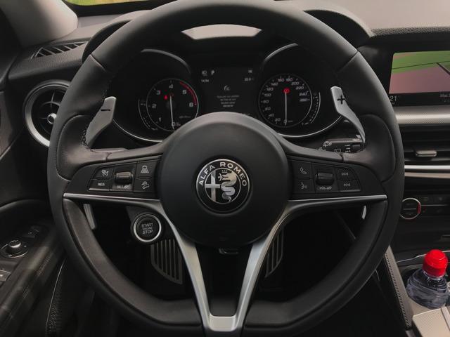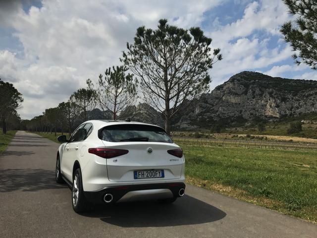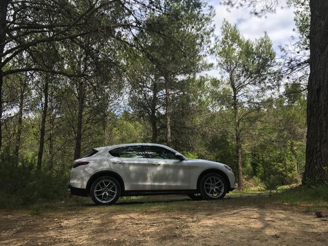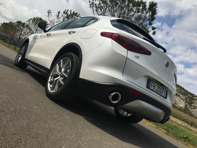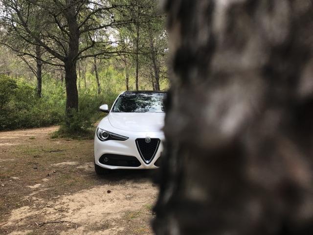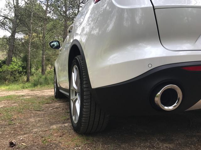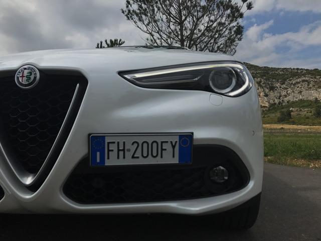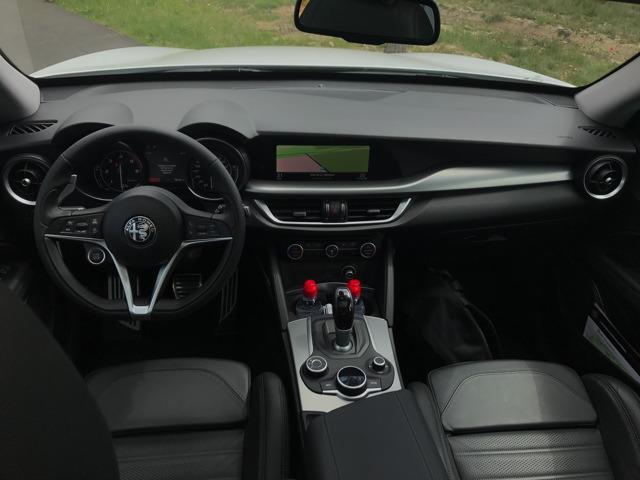A bord, on se retrouve dans l’habitacle d’une Giulia. Évidemment l’habitabilité est tout autre. La position de conduite se trouve plus surélevée. Nous nous rappelons avoir été conquis par les nouveaux intérieurs des berlines premiums allemandes, très futuristes et technologiques. Et pourtant Alfa Romeo a réussi à élaborer une planche de bord séduisante et moderne, sans faire appel à des écrans surdimensionnés. Les compteurs enchâssés dans des canons font leur petit effet, et globalement on aime la présentation. Tous les matériaux ne sont pas aussi raffinés que dans les productions d’Outre-Rhin, sans compter quelques assemblages un poil approximatifs, et pourtant on a envie de pardonner, sans savoir vraiment d’ailleurs pourquoi. En outre il manque cruellement d’équipements aujourd’hui incontournables dans un SUV routier du genre. Puis nous pressions le bouton « Start Stop Engine »…