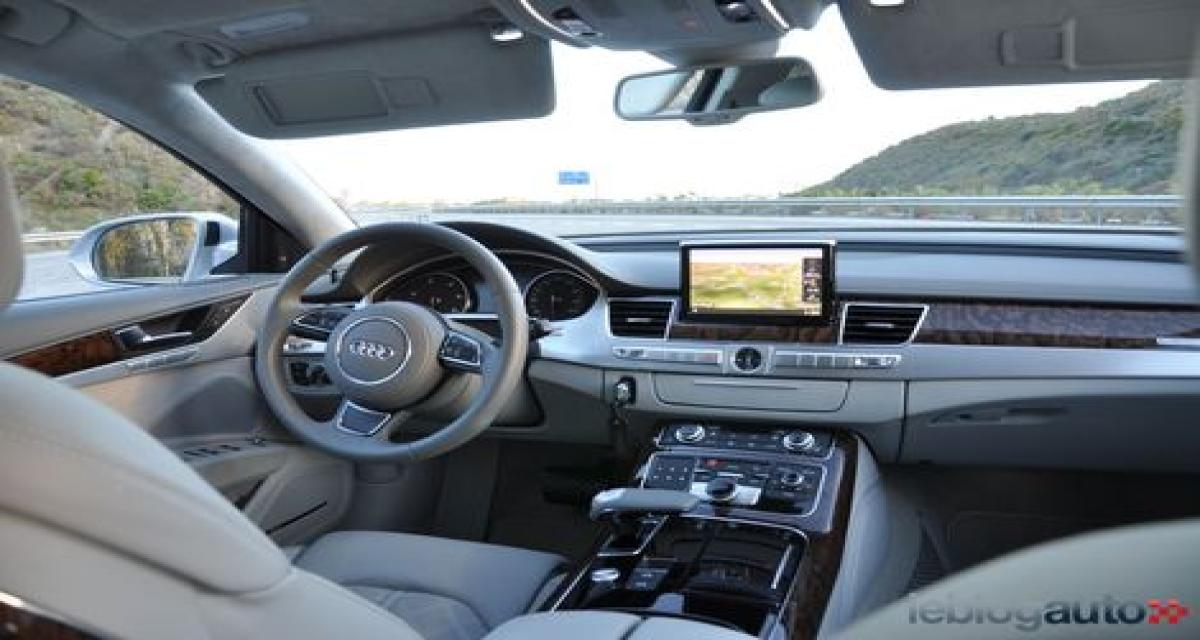 Une fois correctement installé, on découvre une planche de bord au design sobre et à la finition impeccable. Pour obtenir un tel résultat, les usines Audi mêlent les machines et les ouvriers les plus qualifiés. Ainsi, les boiseries sont finies à la main. A propos de boiseries, le choix est large, allant de la ronce de noyer au bouleau. Et le programme de personnalisation Audi Exclusive en rajoute une couche. Le choix est évidemment tout aussi large pour les nuances de cuir. Il est donc possible de se concocter un intérieur sur mesure. Si la classe et la qualité sont là, il manque toutefois un petit soupçon de charme pour rivaliser avec ce qui se fait chez les anglais, Jaguar en particulier. Toutefois, cet intérieur semble bien plus chaleureux que celui des deux concurrentes allemandes de l’A8. Un bon point donc, d’autant plus appréciable que cet aspect joliment classique cache un équipement de premier plan.