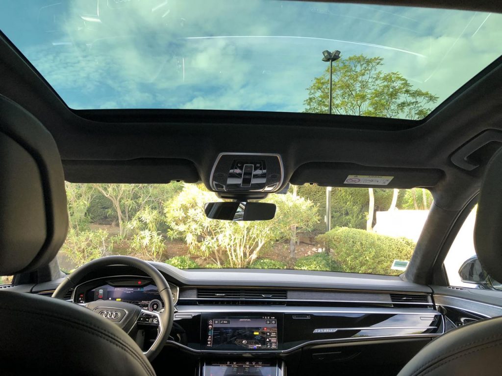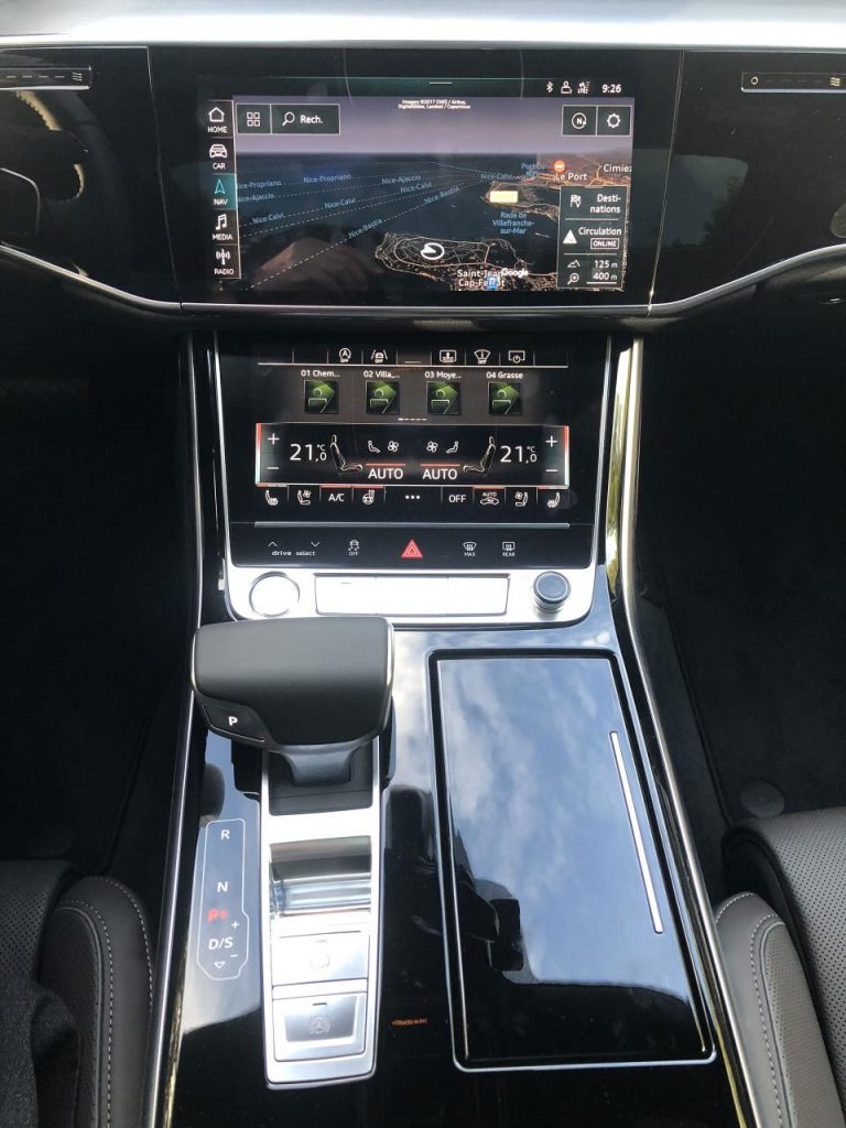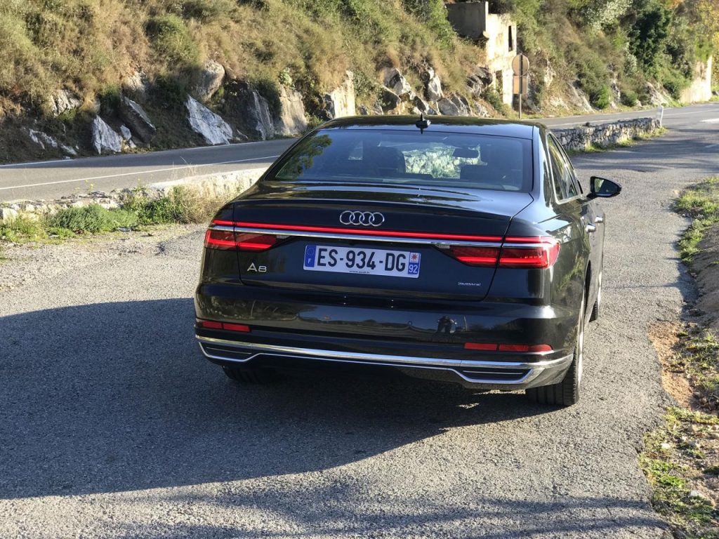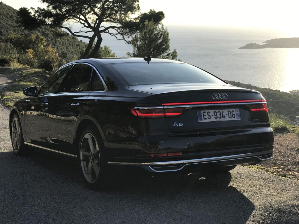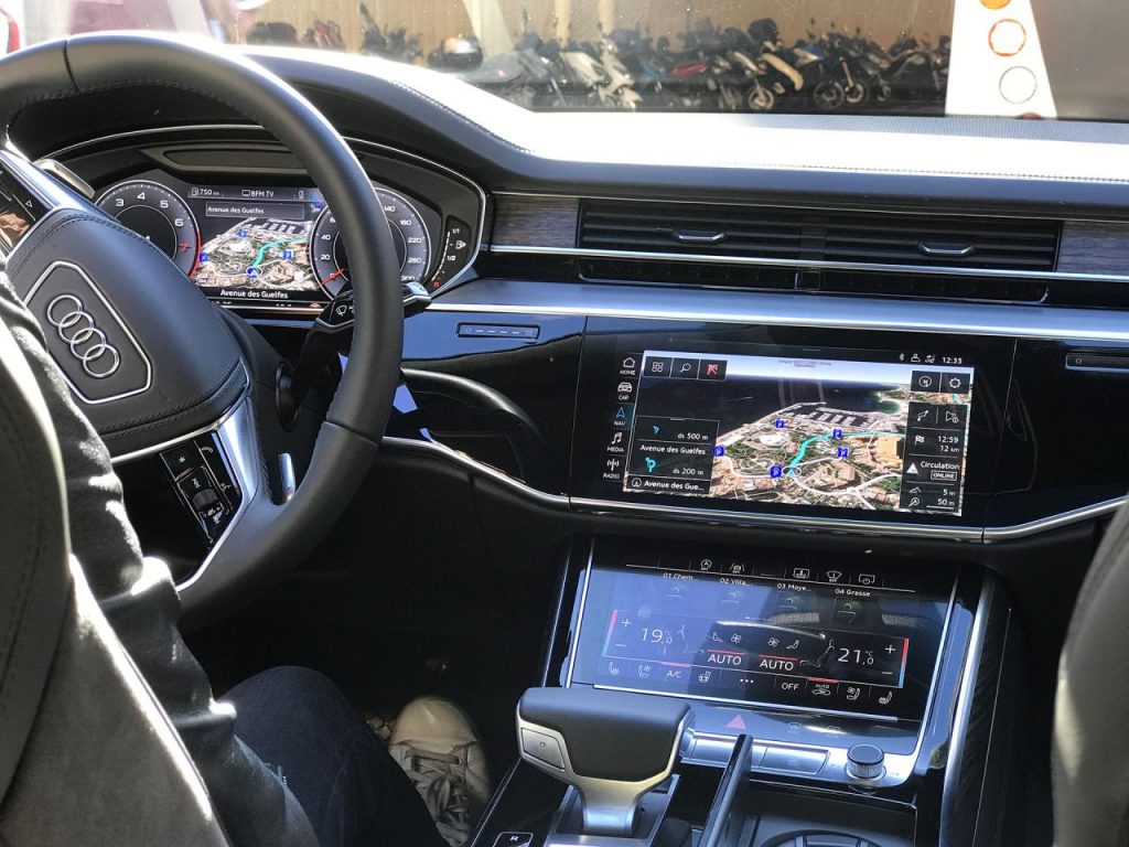 On exagère à peine, car cette A8 adopte suivant les pays, la conduite autonome de niveau 3. Elle peut ainsi se passer de votre vigilance sur les voies à chaussée séparées notamment. Comme Mercedes, comme BMW, on fait sensation en télécommandant ce vaisseau pour entrer ou sortir de son emplacement de parking, depuis l’extérieur. Voici un nouveau point de discussion au moment du café entre professionnels devant les établissements de luxe, qui n’exclut plus les chauffeurs d’Audi A8.