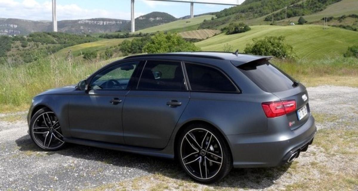 Depuis le RS2 du début des années 90, le break surpuissant fait partie des codes Audi qui font fantasmer un large éventail d’amateurs d’automobile, du gamer adolescent jusqu’au trafiquant de drogue reconnu. Un genre de véhicule qui a sans doute énormément contribué au changement d’image de la marque aux anneaux à la fin du siècle dernier, passée du statut de constructeur un peu ringard à celui de fabricant avant-gardiste, capable d’aller très loin dans la performance sur ses modèles de route. D’un point de vue stylistique, cette nouvelle RS6 Avant possède à peu près tout pour donner la chair de poule aux amateurs du genre, surtout si vous optez pour une livrée mate Gris Daytona comme sur notre modèle d’essai du deuxième jour : entre cette peinture digne d’une AMG Black Series, les jantes de 21 pouces noires laquées, les inserts en fibre de carbone sur le bouclier avant et le gros QUATTRO sur le bas de la calandre, tous les petits artifices sont là pour faire de cette RS6 anthracite un engin de terreur autoroutière particulièrement voyant.