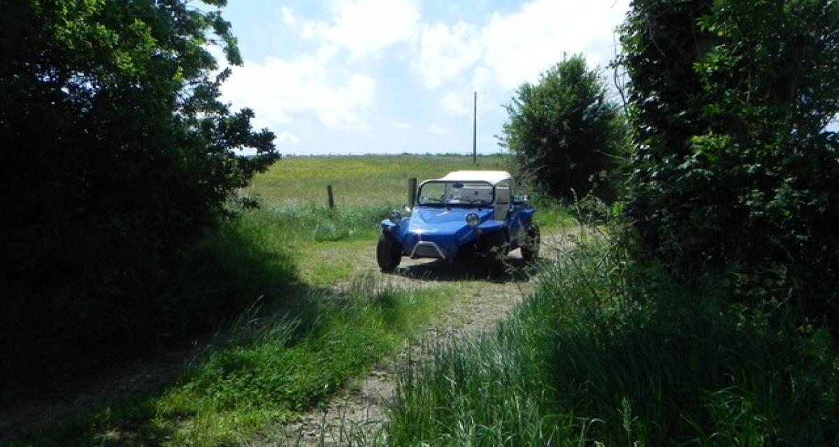 Le buggy du jour n’est pas un Meyers, mais un Eva Motors. Cette société est basée à Pontypridd, en Grande-Bretagne. Néanmoins, la production se fait à Ningbo. Néanmoins, depuis les années 60, le look est immuable: une bouille de batracien (inspirée des Kubelwagen et Schwimmwagen) avec de gros phares au centre et des ailes détachées. Avec ses couleurs vives, on dirait un jouet Hotwheels !