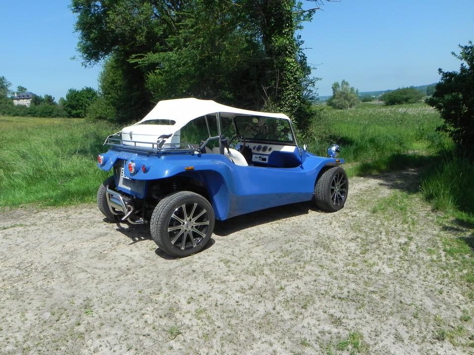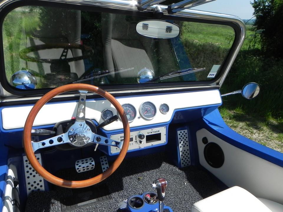 Le Buggy Vintage n’est pas une voiture, mais un « quadricycle lourd ». En conséquence, il est bridé à 20 ch et 90 km/h. Mais après tout, les premières Meyers n’avaient que 36 ch sous le capot… Il est proposé avec une boite manuelle (comme l’orange) ou automatique (comme le bleu). Depuis, il a reçu une nouvelle boite automatique, plus nerveuse.