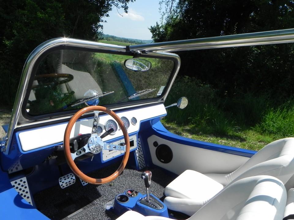 C’est une biplace avec un siège d’appoint. Un coffre occupant l’espace derrière le siège conducteur. Côté équipement, l’inventaire est vite fait… Un buggy, ça doit être léger, point. Tant pis pour les gadgets électroniques. De toute façon, vu qu’il n’y a pas de porte, pas besoin de vitres électriques. Quant à la climatisation, elle serait un peu superflue. Sur une voiture moderne, on n’est plus habitué à un tel dépouillement. Il y a tout de même une radio-MP3 avec allume-cigare. La finition est artisanale.