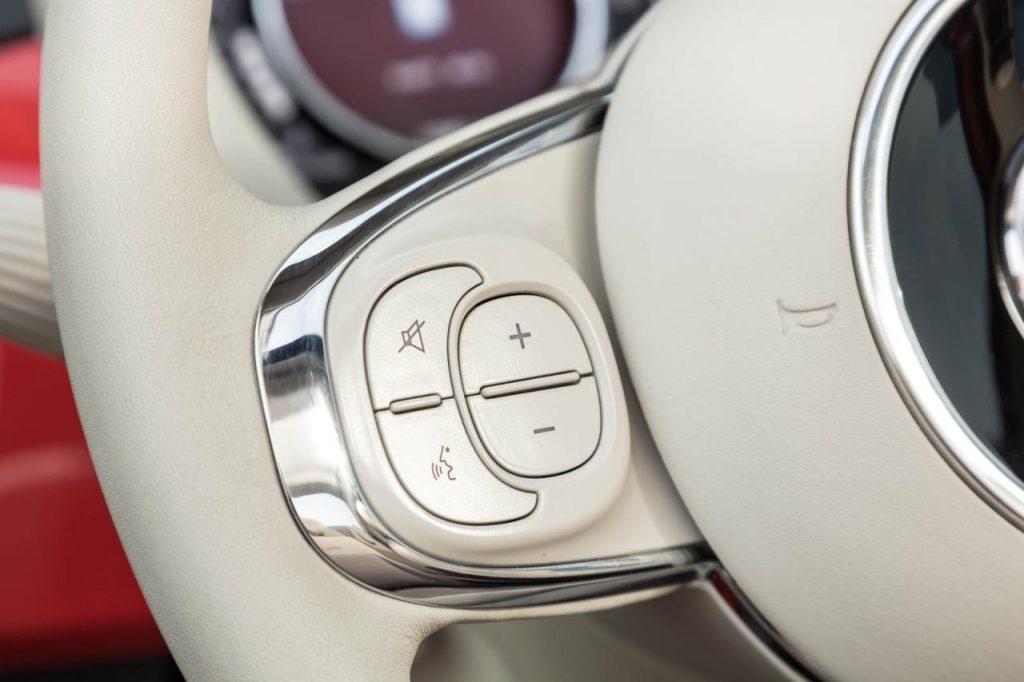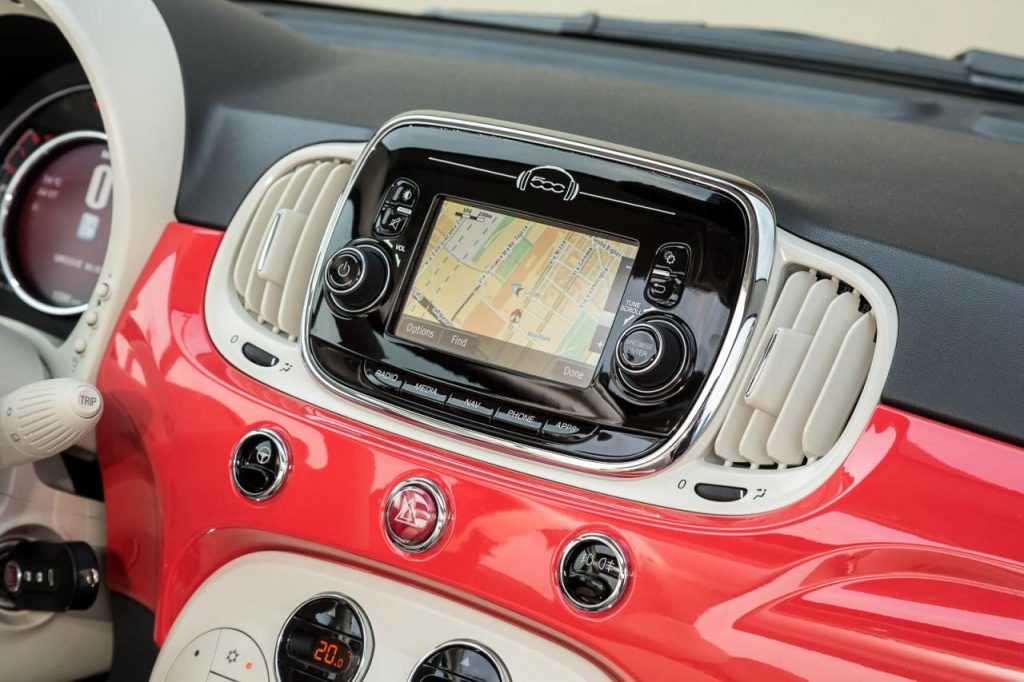 A l’intérieur, il ne faut pas s’attendre non plus à une révolution, et c’est tant mieux. Toutefois la belle se pare désormais d’équipements la rapprochant des modèles les plus modernes. En effet, elle gagne un large écran tactile avec GPS intégré (en option), et aussi l’application Uconnect pour profiter des fonctionnalités des tous derniers smartphones. Pour le reste, il n’y a presque pas d’évolution en termes de qualité perçue et de présentation. Le bloc compteurs passe au digital couleur et c’est à peu près tout. La personnalisation reste de mise que ce soit pour la sellerie et les teintes des différents revêtements. La place sur la banquette arrière taillée pour deux demeure un peu petite, tout comme le coffre qui n’aide pas à faciliter les départs en vacances. Même si certains détails de finition et d’assemblage mériteraient un peu plus d’attention, l’atmosphère prend le dessus.
