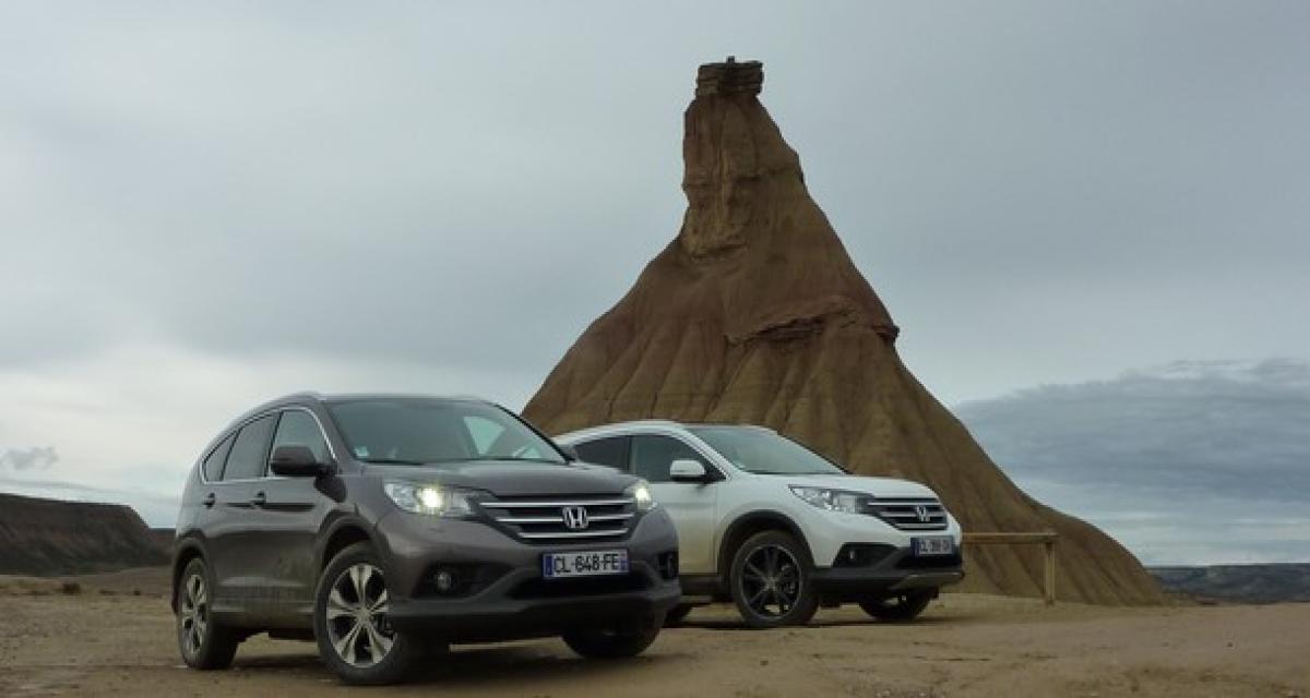 S’il est taillé pour un quotidien balisé, le CR-V sait aussi évoluer avec facilité et dynamisme dans le col d’Ibardin –le terrain de jeu d’une Elise- et s’aventurer sans crainte dans le désert des Bardenas, le territoire de chasse d’un Terrano-. Et s’il est loin d’être aussi brillant qu’eux à domicile, il sait être à l’aise partout. En consommant raisonnablement. Après nos essais, l’ordinateur de bord affichait 7,2l/100 sur la version à boite mécanique et un peu moins d’un litre supplémentaire avec la BVA5. En ce sens, le CR-V est bien ce véhicule polyvalent, facile à prendre en main, pratique et sécurisant, qui répond aux besoins de ceux qui tentent de concilier plusieurs vies, professionnelles et familiales. Avant même l’arrivée d’une version 1.6 Diesel à 2 roues motrices, dans la zone neutre du bonus malus, promise à un bel avenir, le CR-V, qui jouit d’une image positive et plutôt valorisante dans l’hexagone devrait trouver rapidement son public.