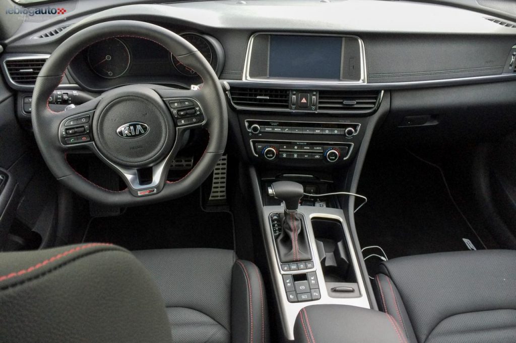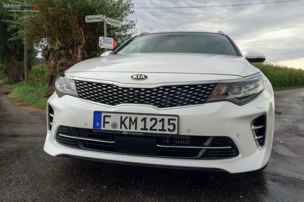 Quand on la regarde de face, on se dit que le style de l’Optima évolue à la marge. Toutefois notre finition GT line facilite la lecture pour la différencier des modèles d’avant 2016. En effet celle-ci fait son entrée dans la gamme avec ses spécificités de style. Mais observons de plus près ce break inédit. La longueur n’évolue pas d’un pouce, mais elle gagne un peu en hauteur. Pour alléger la partie postérieure logiquement plus imposante, le dessin de la vitre de custode et le coffre en pente dynamisent sa ligne. Elle s’accompagne d’un arrière qui singe selon certains observateurs celui d’une Audi A6 ou d’une Ford Mondeo. La partie basse du bouclier intègre un diffuseur d’air esthétique encadré par une canule d’échappement de chaque côté. Malgré ses traits plutôt conventionnels, l’Optima SW a fière allure.