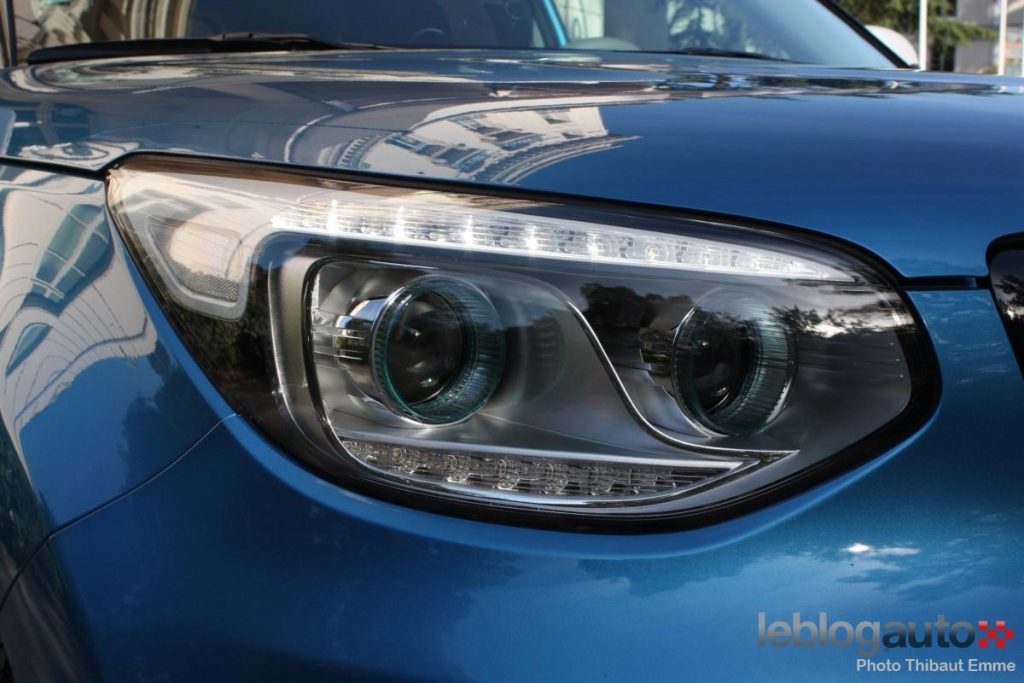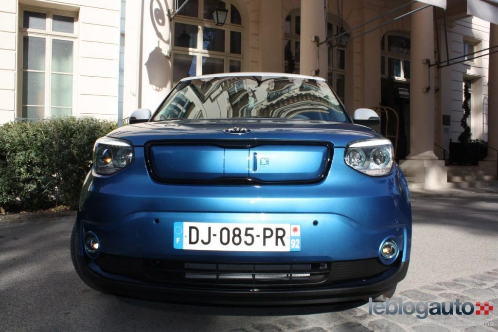 Le Soul EV n’est pas à proprement parler le premier véhicule électrique de Kia, mais c’est le premier qui sort des frontières de la Corée du Sud (et est même à vocation mondiale). Basé sur le Kia Soul thermique restylé, il s’en démarque tout de même par plusieurs points stylistiques. La calandre tout d’abord prend de l’épaisseur et perd son jonc chromé tandis que le bouclier abandonne la grande grille de calandre noire au profit d’une plus discrète ouverture basse. Il en résulte une face avant plus sobre, moins tapageuse mais pas moins agréable à l’oeil.
