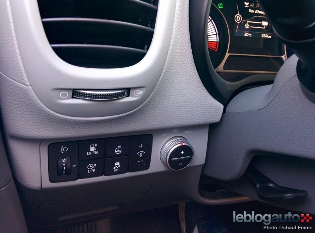 Un bon point à mettre au crédit de Kia, le bouton « driver only » qui arrête le flux d’air côté passager pour ne garder que celui côté conducteur. Une économie d’un pouillème mais qui est pour le coup très électrique dans l’âme.