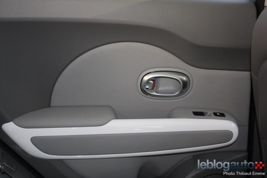 Ces couleurs très claires ne sont pas ultra-gaies (ou « fun ») comme pourrait l’être du jaune, du vert ou du rouge mais ont le très grand mérite de faire un habitacle clair et lumineux. La console centrale blanche tranche avec le noir des (nombreux) boutons et l’écran tactile de 8 pouces. Les plastiques de la partie haute sont de bonne facture tandis que (comme trop souvent) la partie basse est faite de plastiques plus frustres et sonores. Certains détails comme la moquette un peu courte au niveau du pédalier, les pare-soleil, etc. pourraient également être améliorés.