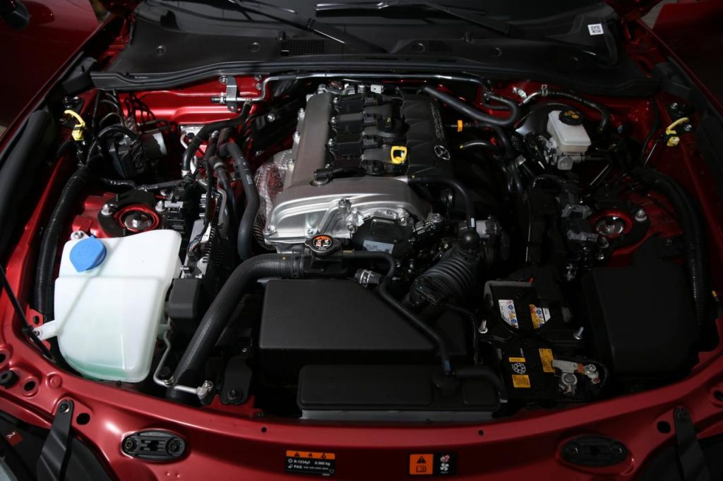 Pour parvenir à ce résultat, le constructeur a opéré plusieurs modifications sur le bloc qui passent, pêle-mêle, par des soupapes d’admission et d’échappement plus larges, une arrivée d’air plus courte, une ligne d’échappement retouchée, offrant au passage une signature auditive plus marquée, et des organes mécaniques plus légers. Au final, le 2,0 litres Skyactiv-G grimpe à 184 ch et 205 Nm de couple, soit une hausse de 24 ch pour 5 Nm. Plus que de simples données dans les cases d’une fiche technique, le bloc affiche des courbes plus intéressantes, avec un pic de couple obtenu près de 1 000 tr/min plus tôt et une puissance maxi repoussée à 7 000 tr/min !