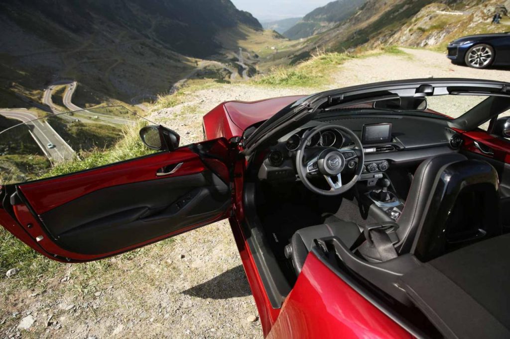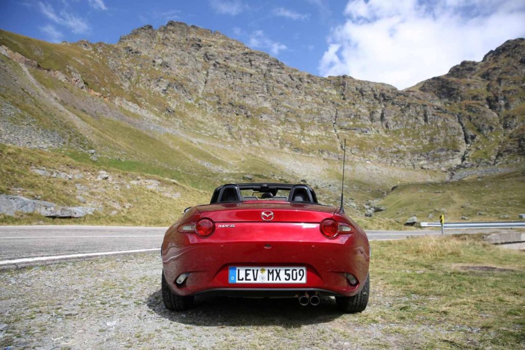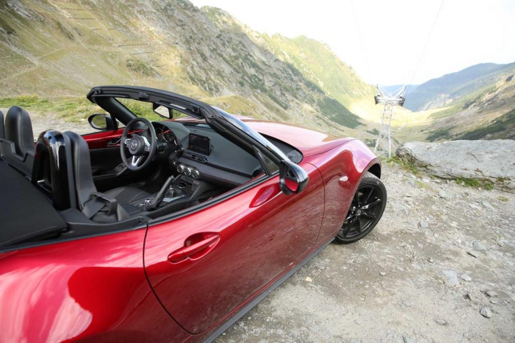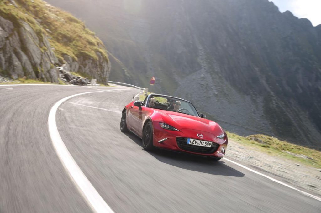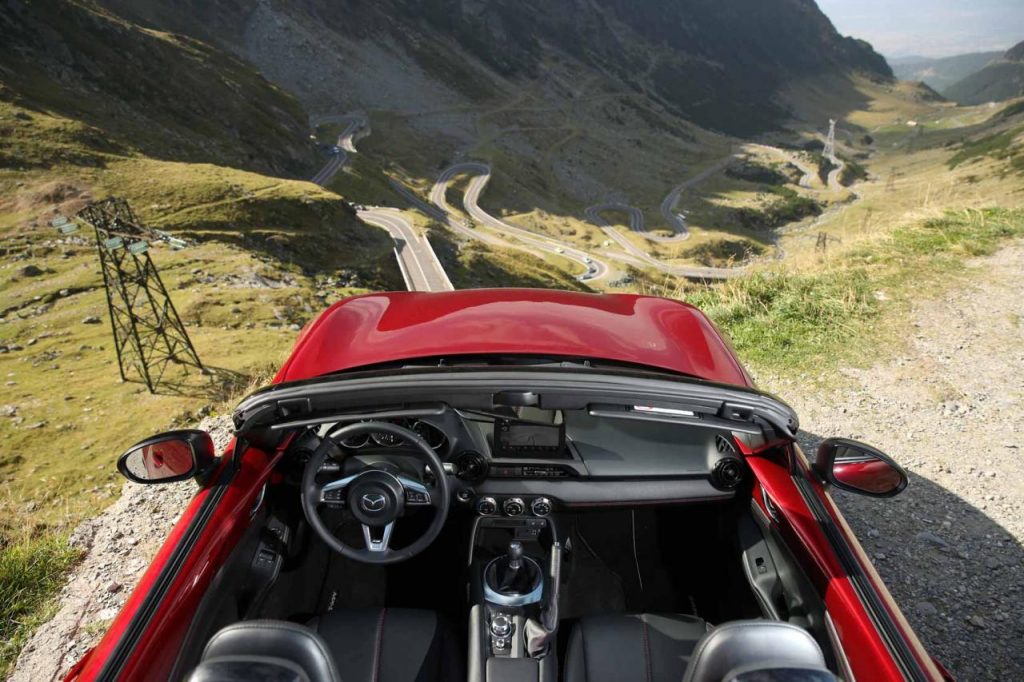 Volant en mains, le Mazda MX-5 offre désormais le caractère enjoué qui m’avait particulièrement séduit dans la version 1,5 litre. Agréable dans les bas fonds du compte-tour, le bloc va chercher avec frénésie sa puissance, voire même le régime maxi de 7 500 tr/min. Un caractère particulièrement flatteur et fidèle à ce que l’on est en droit d’attendre d’un moteur atmosphérique, au contraire de la précédente mouture qui coupait à 6 500 tr/min. Je me retrouve alors à profiter de ces régimes de rotation élevés sans toucher à la commande de boîte, au demeurant exceptionnelle, en conservant le rapport entre deux épingles de la théâtrale Transfagarasan.