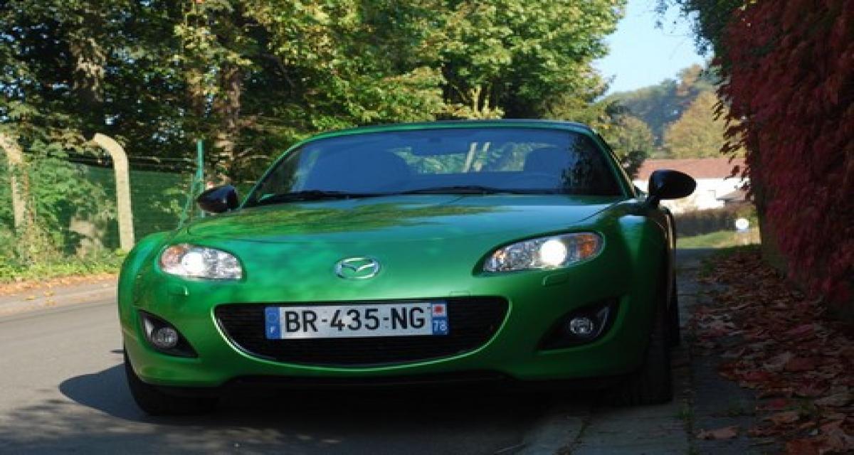 En ligne droite, l’auto est allègre, affichant 7,9 secondes pour le 0 à 100 km/h. Mais là où une MX5 révèle sa personnalité, c’est dans une courbe. L’avant se place parfaitement, et l’arrière lui est d’une délicate intention en survirant juste ce qu’il faut, juste assez pour se sentir l’âme d’un pilote. On se rend rapidement compte qu’il est d’une facilité déconcertante de décrocher le train arrière, pour le laisser glisser à souhait. Et la MX5 l’appelle, ce souhait. La boîte de vitesses directe est un régal en rapide voie de disparition sur des sportives où le double embrayage se fait de plus en plus présent, voire obligatoire. Une courbe, un coup de volant, une accélération, et la bête verte se débat dans tout les sens, c’est jouissif. Le Recaro joue parfaitement son rôle lui, et l’impression d’être au ras du sol fait de toute accélération et de toute glissade un moment d’intense sensation.