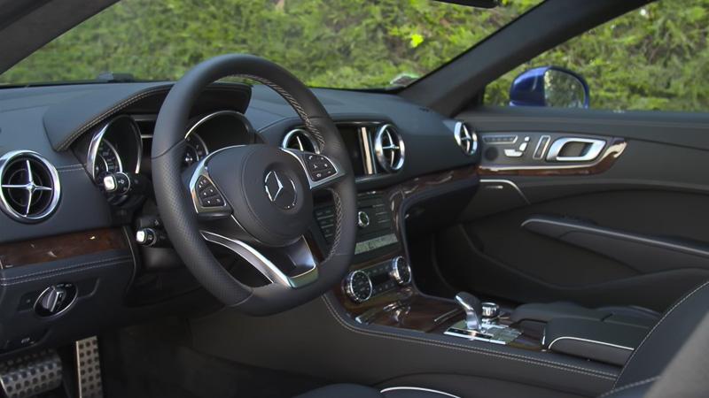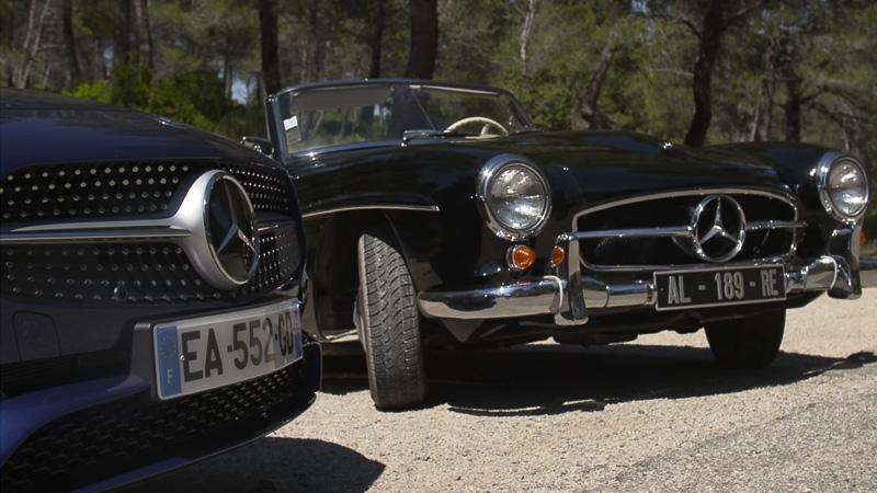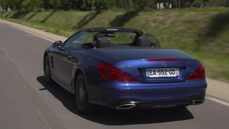 A l’intérieur le meilleur du luxe se marie avec les toutes dernières technologies. Les cuirs pleine fleur flirtent avec les chromes disséminés un peu partout. Ce petit salon d’intérieur flatte les occupants pour leur plus grand plaisir. On se sent à l’aise, avec le désir de faire durer le voyage avant même qu’il ne commence. Pour le reste, les golden boys à tendance geek vont adorer toutes les assistances à la conduite, pour rester en ligne sur l’autoroute, ou le régulateur intelligent qui rend les mains et les pieds superflus. Mercedes maîtrise clairement les premières pas de la conduite assistée. Dès lors, nous nous retrouvons dans les meilleures dispositions possibles pour profiter du ciel, une fois le toit effacé en quelques secondes de manière complètement automatique. Pour l’hiver, le toit en deux parties permet d’atteindre une isolation phonique de berline ou de coupé. On navigue donc dans le meilleur des deux mondes.