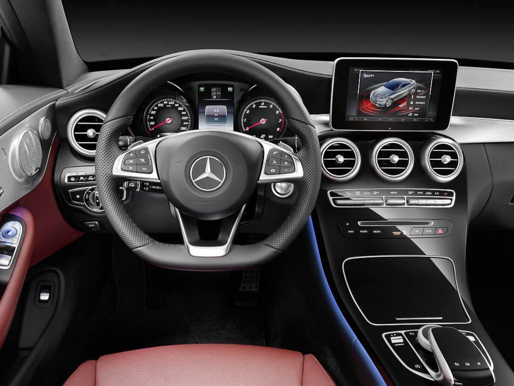 A bord, on pénètre dans une ambiance premium, avec un dessin de planche de bord repris de la Classe C, avec la justesse de son assemblage et l’association de matériaux sélectionnés. Aux places avant, on se retrouve ainsi dans la berline, en étant un peu plus bas. Toutefois, elle a droit à certains choix de placages exclusifs, et une sellerie spécifique. C’est ainsi logiquement qu’elle récupère également tous les équipements dernier cri, articulés autour du grand écran qui ressemble à une tablette, sans en être une, car non tactile. Un grief qui devient de moins en moins acceptable compte tenu de la multiplication de cette technologie chez tous les constructeurs premiums (ou pas). Cependant, les habitués ne se posent de toute façon pas la question, et se ficheront royalement de ce genre de commentaires. On se sent en tout cas bien à bord de cette Classe C coupé, avant même de démarrer.